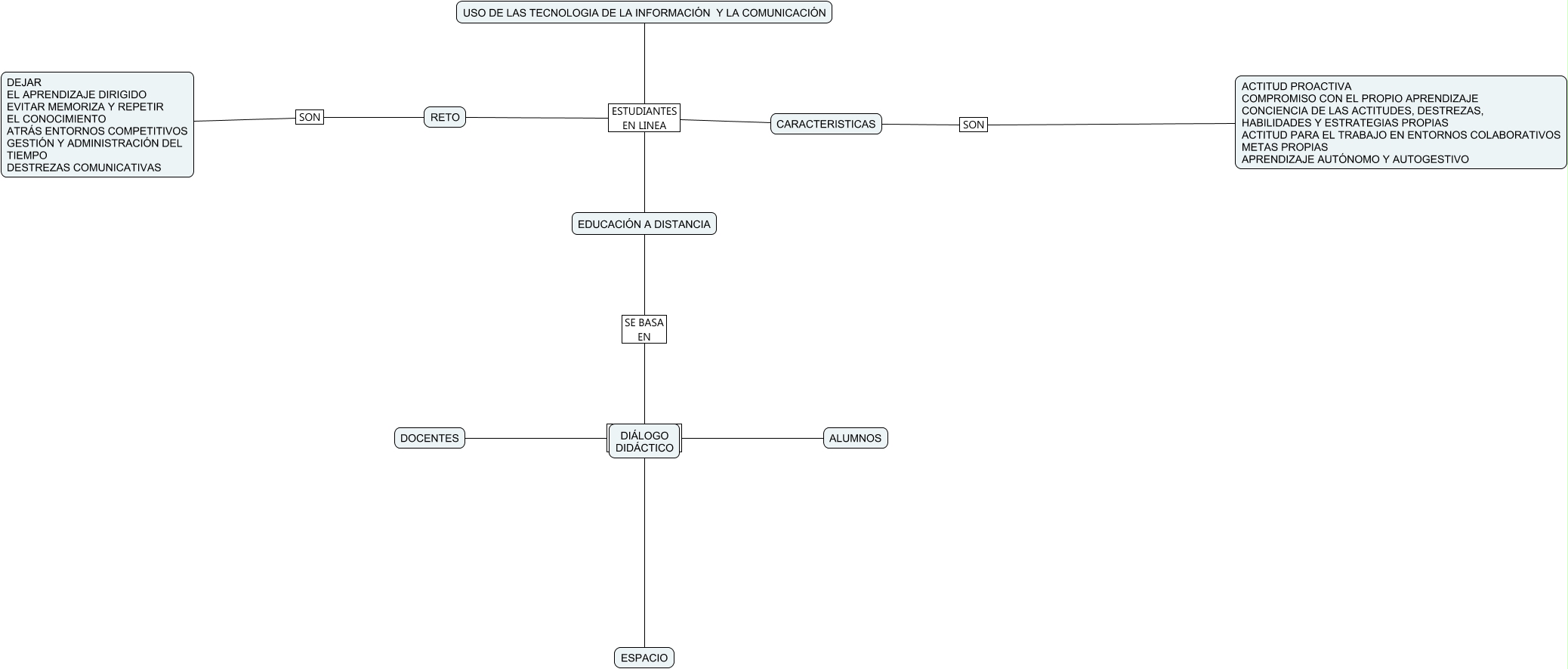 Este Cmap, tiene información relacionada con: Sin Título 1, DEJAR EL APRENDIZAJE DIRIGIDO EVITAR MEMORIZA Y REPETIR EL CONOCIMIENTO ATRÁS ENTORNOS COMPETITIVOS GESTIÓN Y ADMINISTRACIÓN DEL TIEMPO DESTREZAS COMUNICATIVAS SON RETO, EDUCACIÓN A DISTANCIA SE BASA EN DIÁLOGO DIDÁCTICO, DIÁLOGO DIDÁCTICO ENTRE INTERACTUAN ALUMNOS, DIÁLOGO DIDÁCTICO ENTRE INTERACTUAN DOCENTES, DIÁLOGO DIDÁCTICO ENTRE INTERACTUAN ESPACIO, USO DE LAS TECNOLOGIA DE LA INFORMACIÓN Y LA COMUNICACIÓN ESTUDIANTES EN LINEA RETO, CARACTERISTICAS SON ACTITUD PROACTIVA COMPROMISO CON EL PROPIO APRENDIZAJE CONCIENCIA DE LAS ACTITUDES, DESTREZAS, HABILIDADES Y ESTRATEGIAS PROPIAS ACTITUD PARA EL TRABAJO EN ENTORNOS COLABORATIVOS METAS PROPIAS APRENDIZAJE AUTÓNOMO Y AUTOGESTIVO, USO DE LAS TECNOLOGIA DE LA INFORMACIÓN Y LA COMUNICACIÓN ESTUDIANTES EN LINEA EDUCACIÓN A DISTANCIA, USO DE LAS TECNOLOGIA DE LA INFORMACIÓN Y LA COMUNICACIÓN ESTUDIANTES EN LINEA CARACTERISTICAS