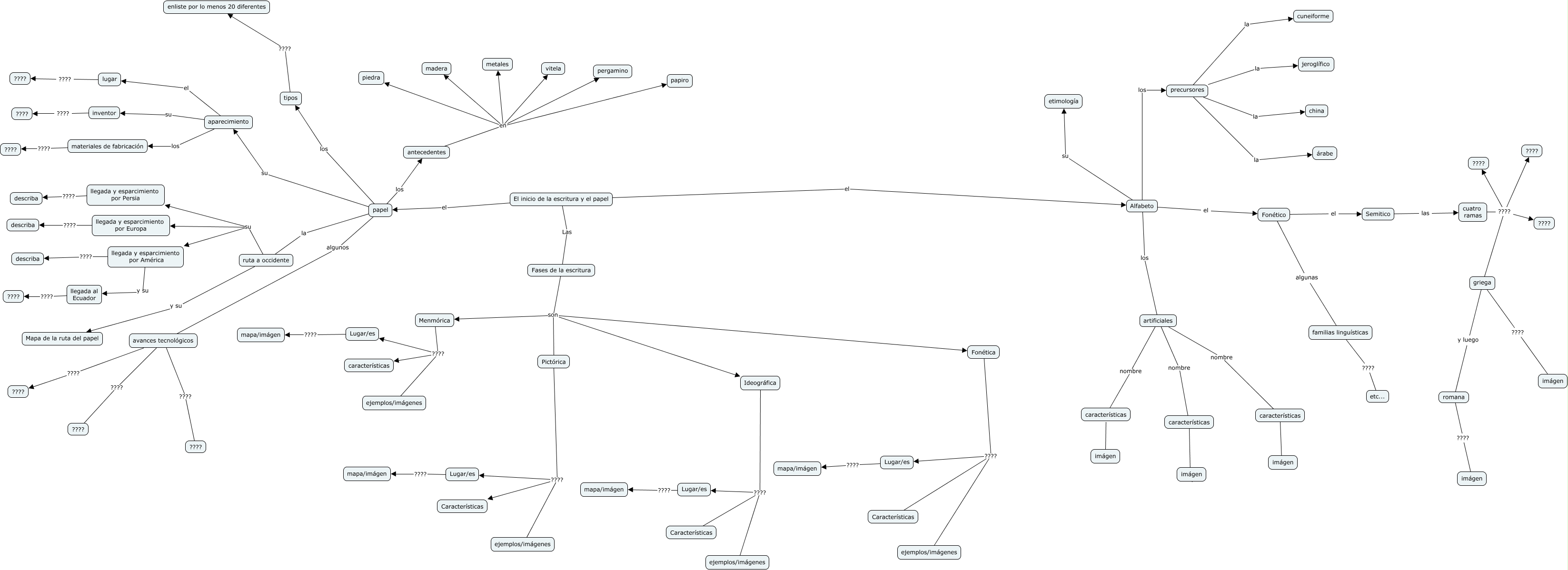 Este Cmap, tiene información relacionada con: Hisoria de la comunicación, familias linguísticas ???? etc..., papel los tipos, romana ???? imágen, Pictórica ???? Lugar/es, Fases de la escritura son Pictórica, papel su aparecimiento, precursores la árabe, Menmórica ???? Lugar/es, Ideográfica ???? Lugar/es, cuatro ramas ???? griega, papel la ruta a occidente, Menmórica ???? ejemplos/imágenes, ruta a occidente su llegada y esparcimiento por Europa, avances tecnológicos ???? ????, lugar ???? ????, artificiales nombre características, Menmórica ???? características, llegada y esparcimiento por Europa ???? describa, antecedentes en vitela, Ideográfica ???? ejemplos/imágenes