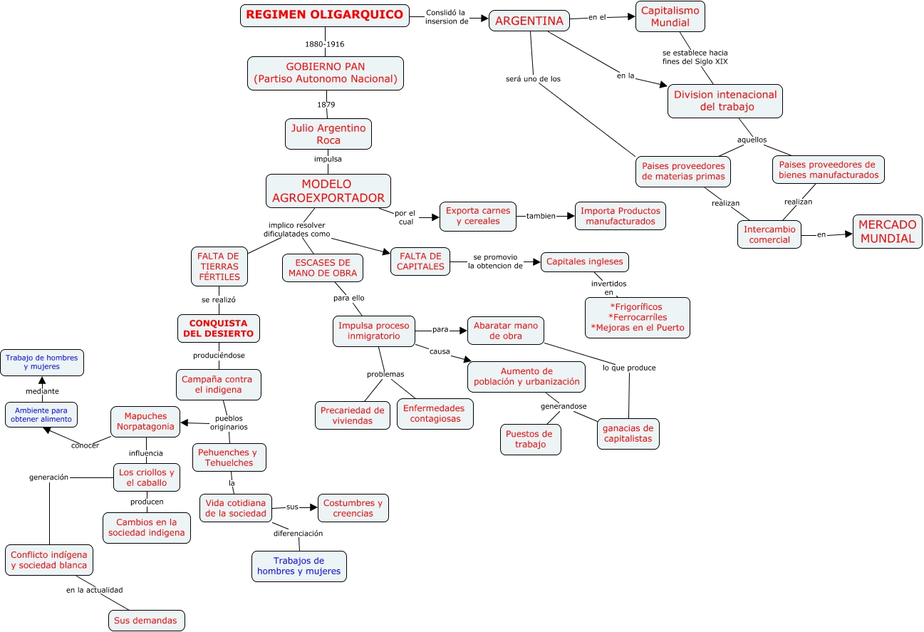 Este Cmap, tiene información relacionada con: SOCIALES, MODELO AGROEXPORTADOR implico resolver dificulatades como ESCASES DE MANO DE OBRA, Aumento de población y urbanización generandose ganacias de capitalistas, Impulsa proceso inmigratorio causa Aumento de población y urbanización, Mapuches Norpatagonia influencia Los criollos y el caballo, Los criollos y el caballo generación Conflicto indígena y sociedad blanca, MODELO AGROEXPORTADOR por el cual Exporta carnes y cereales, Aumento de población y urbanización generandose Puestos de trabajo, MODELO AGROEXPORTADOR implico resolver dificulatades como FALTA DE TIERRAS FÉRTILES, Division intenacional del trabajo aquellos Paises proveedores de materias primas, Capitales ingleses invertidos en *Frigoríficos *Ferrocarríles *Mejoras en el Puerto, GOBIERNO PAN (Partiso Autonomo Nacional) 1879 Julio Argentino Roca, CONQUISTA DEL DESIERTO produciéndose Campaña contra el indigena, Pehuenches y Tehuelches la Vida cotidiana de la sociedad, REGIMEN OLIGARQUICO Conslidó la insersion de ARGENTINA, Campaña contra el indigena pueblos originarios Mapuches Norpatagonia, Abaratar mano de obra lo que produce ganacias de capitalistas, MODELO AGROEXPORTADOR implico resolver dificulatades como FALTA DE CAPITALES, Ambiente para obtener alimento mediante Trabajo de hombres y mujeres, Conflicto indígena y sociedad blanca en la actualidad Sus demandas, FALTA DE TIERRAS FÉRTILES se realizó CONQUISTA DEL DESIERTO