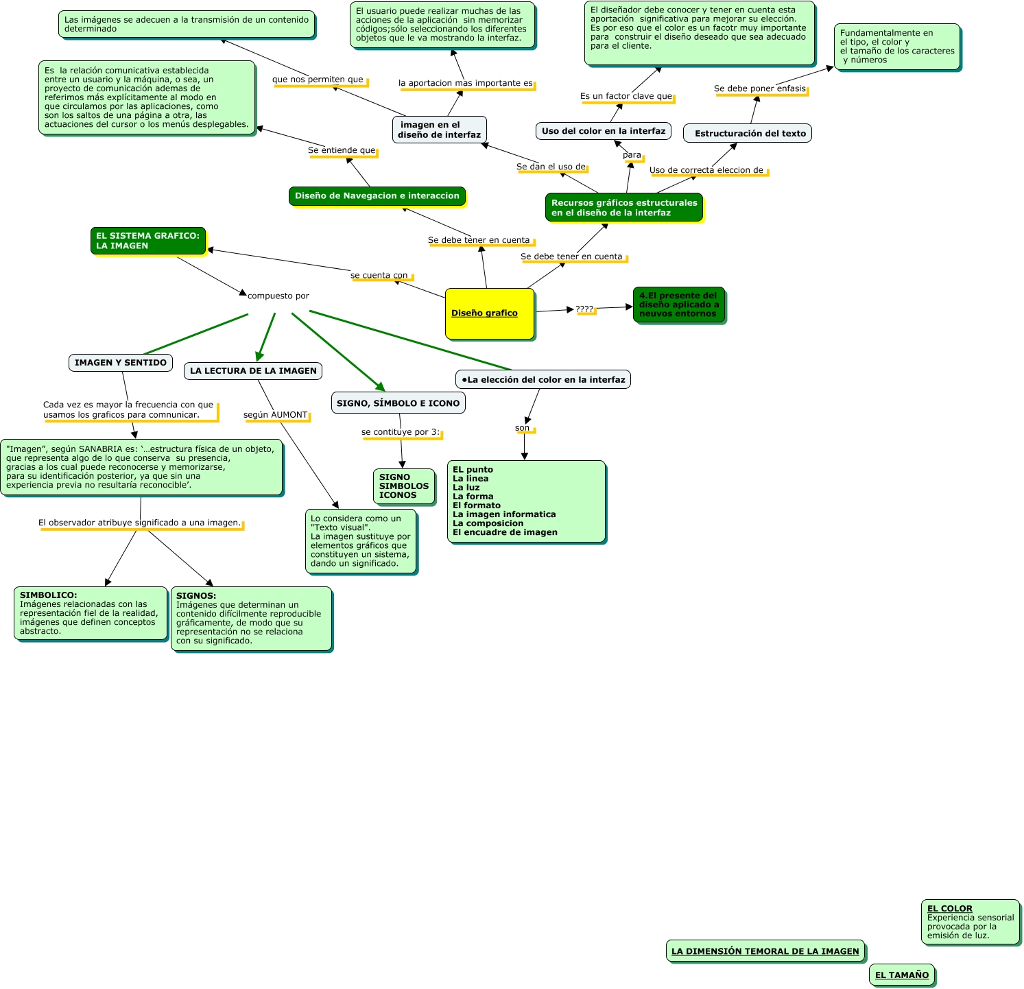 Este Cmap, tiene información relacionada con: tarea, EL SISTEMA GRAFICO: LA IMAGEN compuesto por LA LECTURA DE LA IMAGEN, Recursos gráficos estructurales en el diseño de la interfaz Se dan el uso de imagen en el diseño de interfaz, "Imagen”, según SANABRIA es: ‘…estructura física de un objeto, que representa algo de lo que conserva su presencia, gracias a los cual puede reconocerse y memorizarse, para su identificación posterior, ya que sin una experiencia previa no resultaría reconocible’. El observador atribuye significado a una imagen. SIGNOS: Imágenes que determinan un contenido difícilmente reproducible gráficamente, de modo que su representación no se relaciona con su significado., SIGNO, SÍMBOLO E ICONO se contituye por 3: SIGNO SIMBOLOS ICONOS, Diseño de Navegacion e interaccion Se entiende que Es la relación comunicativa establecida entre un usuario y la máquina, o sea, un proyecto de comunicación ademas de referimos más explícitamente al modo en que circulamos por las aplicaciones, como son los saltos de una página a otra, las actuaciones del cursor o los menús desplegables., LA LECTURA DE LA IMAGEN según AUMONT Lo considera como un "Texto visual". La imagen sustituye por elementos gráficos que constituyen un sistema, dando un significado., Diseño grafico Se debe tener en cuenta Diseño de Navegacion e interaccion, Diseño grafico Se debe tener en cuenta Recursos gráficos estructurales en el diseño de la interfaz, Diseño grafico se cuenta con EL SISTEMA GRAFICO: LA IMAGEN, Recursos gráficos estructurales en el diseño de la interfaz Uso de correcta eleccion de Estructuración del texto, EL SISTEMA GRAFICO: LA IMAGEN compuesto por • La elección del color en la interfaz, EL SISTEMA GRAFICO: LA IMAGEN compuesto por IMAGEN Y SENTIDO, "Imagen”, según SANABRIA es: ‘…estructura física de un objeto, que representa algo de lo que conserva su presencia, gracias a los cual puede reconocerse y memorizarse, para su identificación posterior, ya que sin una experiencia previa no resultaría reconocible’. El observador atribuye significado a una imagen. SIMBOLICO: Imágenes relacionadas con las representación fiel de la realidad, imágenes que definen conceptos abstracto., • La elección del color en la interfaz son EL punto La linea La luz La forma El formato La imagen informatica La composicion El encuadre de imagen, Estructuración del texto Se debe poner enfasis Fundamentalmente en el tipo, el color y el tamaño de los caracteres y números, imagen en el diseño de interfaz que nos permiten que Las imágenes se adecuen a la transmisión de un contenido determinado, Uso del color en la interfaz Es un factor clave que El diseñador debe conocer y tener en cuenta esta aportación significativa para mejorar su elección. Es por eso que el color es un facotr muy importante para construir el diseño deseado que sea adecuado para el cliente., IMAGEN Y SENTIDO Cada vez es mayor la frecuencia con que usamos los graficos para comnunicar. "Imagen”, según SANABRIA es: ‘…estructura física de un objeto, que representa algo de lo que conserva su presencia, gracias a los cual puede reconocerse y memorizarse, para su identificación posterior, ya que sin una experiencia previa no resultaría reconocible’., Recursos gráficos estructurales en el diseño de la interfaz para Uso del color en la interfaz, Diseño grafico ???? 4.El presente del diseño aplicado a neuvos entornos