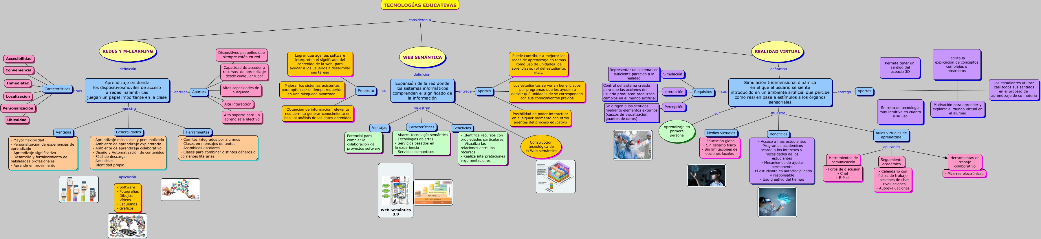 Este Cmap, tiene información relacionada con: Actividad 7. Mapa Conceptual, WEB SEMÁNTICA definición Expansión de la red donde los sistemas informáticos comprenden el significado de la información, Expansión de la red donde los sistemas informáticos comprenden el significado de la información muestran Beneficios, REALIDAD VIRTUAL definición Simulación tridimensional dinámica en el que el usuario se siente introducido en un ambiente artificial que percibe como real en base a estímulos a los órganos sensoriales, Características ???? Personalización, Medios virtuales ???? - Educación global - Sin espacio físico - Sin limitaciones de opciones locales, Aulas virtuales de aprendizaje aplicando Herramientas de comunicación, Aportes entrega Simulación tridimensional dinámica en el que el usuario se siente introducido en un ambiente artificial que percibe como real en base a estímulos a los órganos sensoriales, Simulación tridimensional dinámica en el que el usuario se siente introducido en un ambiente artificial que percibe como real en base a estímulos a los órganos sensoriales muestra Aulas virtuales de aprendizaje, Aprendizaje en donde los dispósitivosmoviles de acceso a redes inalambricas juegan un papel importante en la clase muestra Herramientas, Requisitos sus Simulación tridimensional dinámica en el que el usuario se siente introducido en un ambiente artificial que percibe como real en base a estímulos a los órganos sensoriales, Seguimiento académico ???? - Calendario con fichas de trabajo - sesiones de chat - Evaluaciones - Autoevaluaciones, Percepción ???? Se dirigen a los sentidos mediante elementos externos (cascos de visualización, guantes de datos), TECNOLOGÍAS EDUCATIVAS consideran a REDES Y M-LEARNING, Generalidades ???? - Aprendizaje más social y personalizado - Ambiente de aprendizaje exploratorio - Ambiente de aprendizaje colaborativo - Diseño y Automatización de contenidos - Fácil de descargar - Accesibles - Identidad propia, Simulación tridimensional dinámica en el que el usuario se siente introducido en un ambiente artificial que percibe como real en base a estímulos a los órganos sensoriales muestra Medios virtuales, Simulación tridimensional dinámica en el que el usuario se siente introducido en un ambiente artificial que percibe como real en base a estímulos a los órganos sensoriales su Aprendizaje en primera persona, Simulación tridimensional dinámica en el que el usuario se siente introducido en un ambiente artificial que percibe como real en base a estímulos a los órganos sensoriales muestra Beneficios, Aprendizaje en donde los dispósitivosmoviles de acceso a redes inalambricas juegan un papel importante en la clase muestra Generalidades, TECNOLOGÍAS EDUCATIVAS consideran a ????, Propósito ???? Lograr que agentes software interpreten el significado del contenido de la web, para ayudar a los usuarios a desarrollar sus tareas