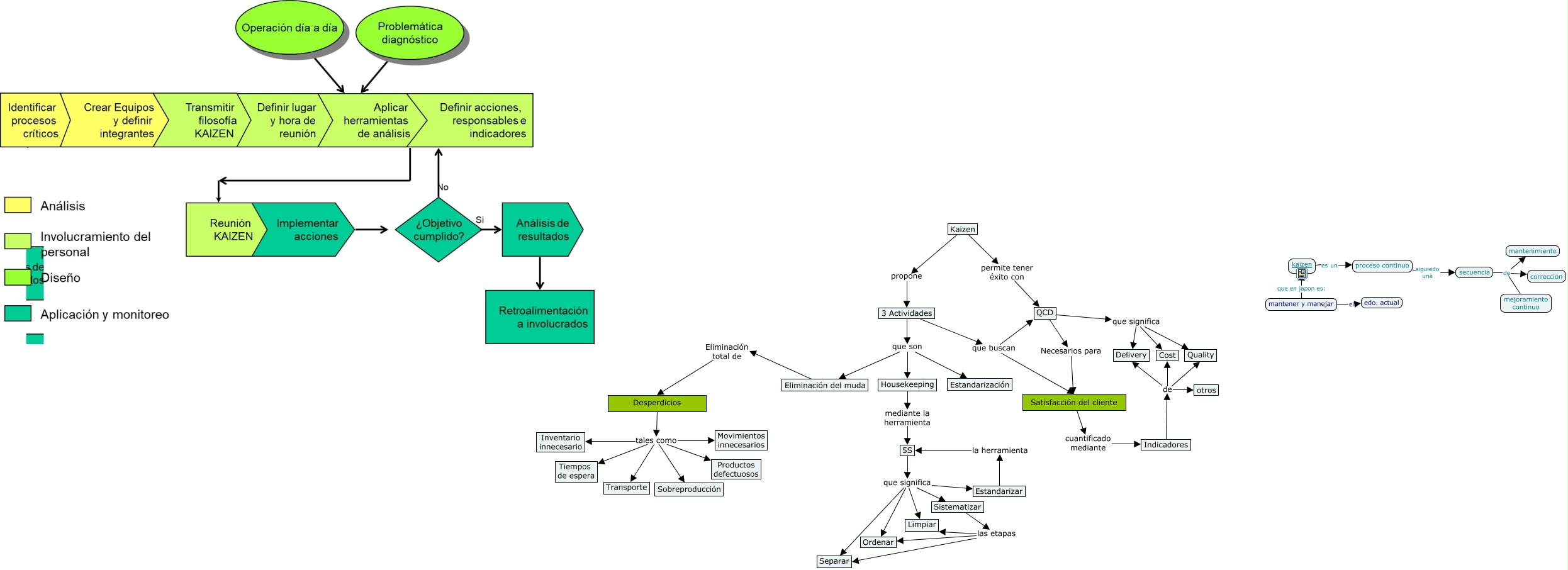 Este Cmap, tiene información relacionada con: kaizen, Sistematizar las etapas Ordenar, 3 Actividades que son Housekeeping, 3 Actividades que buscan QCD, Eliminación del muda Eliminación total de Desperdicios, Housekeeping mediante la herramienta 5S, QCD que significa Cost, Indicadores de otros, 5S que significa Limpiar, 3 Actividades que son Eliminación del muda, Indicadores de Quality, Kaizen permite tener éxito con QCD, Desperdicios tales como Productos defectuosos, 5S que significa Separar, 3 Actividades que son Estandarización, 5S que significa Sistematizar, QCD Necesarios para Satisfacción del cliente, Indicadores de Delivery, Estandarizar la herramienta 5S, secuencia de corrección, Indicadores de Cost