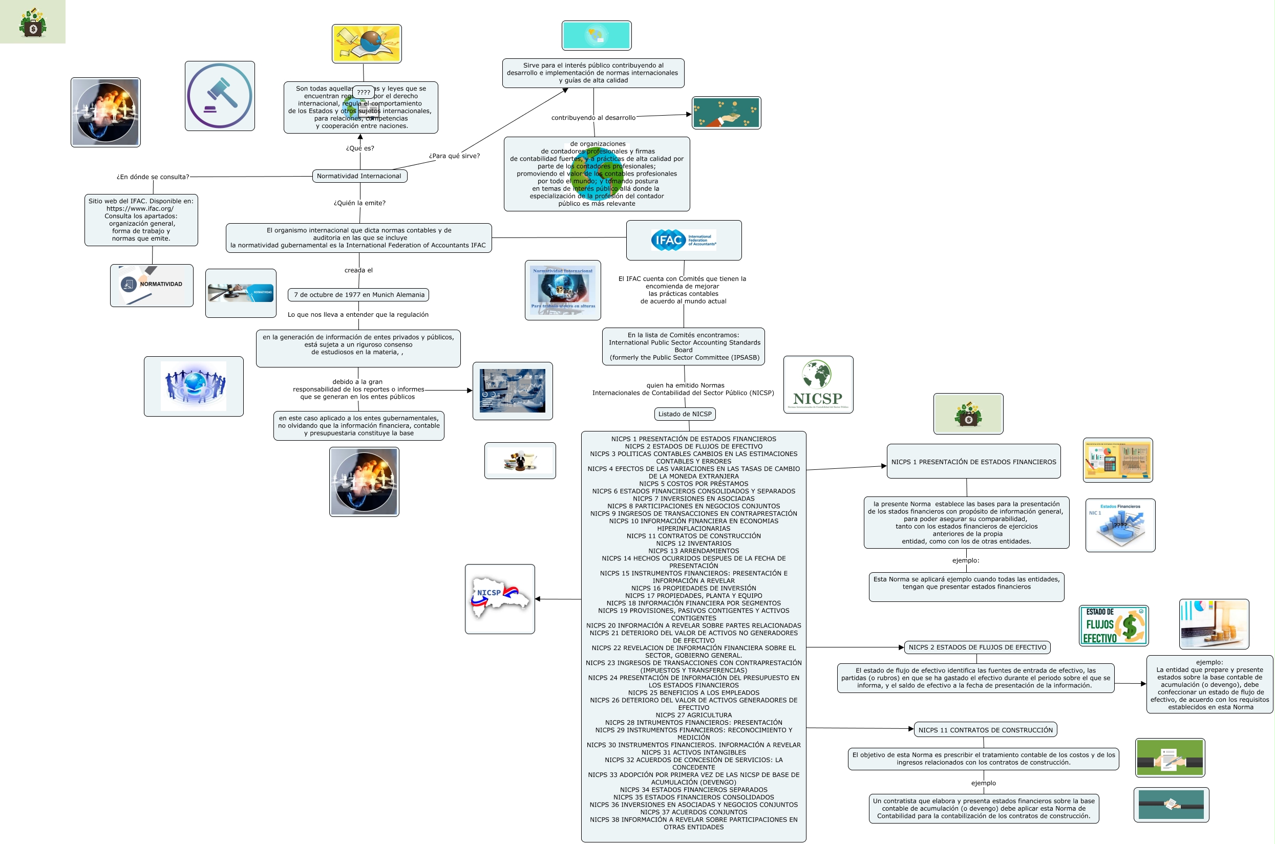 Este Cmap, tiene información relacionada con: NORMATIVIDAD, El organismo internacional que dicta normas contables y de auditoria en las que se incluye la normatividad gubernamental es la International Federation of Accountants IFAC ????, El estado de flujo de efectivo identifica las fuentes de entrada de efectivo, las partidas (o rubros) en que se ha gastado el efectivo durante el periodo sobre el que se informa, y el saldo de efectivo a la fecha de presentación de la información. ???? ejemplo: La entidad que prepare y presente estados sobre la base contable de acumulación (o devengo), debe confeccionar un estado de flujo de efectivo, de acuerdo con los requisitos establecidos en esta Norma, El organismo internacional que dicta normas contables y de auditoria en las que se incluye la normatividad gubernamental es la International Federation of Accountants IFAC creada el 7 de octubre de 1977 en Munich Alemania, Sirve para el interés público contribuyendo al desarrollo e implementación de normas internacionales y guías de alta calidad contribuyendo al desarrollo, Listado de NICSP ???? NICPS 1 PRESENTACIÓN DE ESTADOS FINANCIEROS NICPS 2 ESTADOS DE FLUJOS DE EFECTIVO NICPS 3 POLITICAS CONTABLES CAMBIOS EN LAS ESTIMACIONES CONTABLES Y ERRORES NICPS 4 EFECTOS DE LAS VARIACIONES EN LAS TASAS DE CAMBIO DE LA MONEDA EXTRANJERA NICPS 5 COSTOS POR PRÉSTAMOS NICPS 6 ESTADOS FINANCIEROS CONSOLIDADOS Y SEPARADOS NICPS 7 INVERSIONES EN ASOCIADAS NICPS 8 PARTICIPACIONES EN NEGOCIOS CONJUNTOS NICPS 9 INGRESOS DE TRANSACCIONES EN CONTRAPRESTACIÓN NICPS 10 INFORMACIÓN FINANCIERA EN ECONOMIAS HIPERINFLACIONARIAS NICPS 11 CONTRATOS DE CONSTRUCCIÓN NICPS 12 INVENTARIOS NICPS 13 ARRENDAMIENTOS NICPS 14 HECHOS OCURRIDOS DESPUES DE LA FECHA DE PRESENTACIÓN NICPS 15 INSTRUMENTOS FINANCIEROS: PRESENTACIÓN E INFORMACIÓN A REVELAR NICPS 16 PROPIEDADES DE INVERSIÓN NICPS 17 PROPIEDADES, PLANTA Y EQUIPO NICPS 18 INFORMACIÓN FINANCIERA POR SEGMENTOS NICPS 19 PROVISIONES, PASIVOS CONTIGENTES Y ACTIVOS CONTIGENTES NICPS 20 INFORMACIÓN A REVELAR SOBRE PARTES RELACIONADAS NICPS 21 DETERIORO DEL VALOR DE ACTIVOS NO GENERADORES DE EFECTIVO NICPS 22 REVELACION DE INFORMACIÓN FINANCIERA SOBRE EL SECTOR, GOBIERNO GENERAL. NICPS 23 INGRESOS DE TRANSACCIONES CON CONTRAPRESTACIÓN (IMPUESTOS Y TRANSFERENCIAS) NICPS 24 PRESENTACIÓN DE INFORMACIÓN DEL PRESUPUESTO EN LOS ESTADOS FINANCIEROS NICPS 25 BENEFICIOS A LOS EMPLEADOS NICPS 26 DETERIORO DEL VALOR DE ACTIVOS GENERADORES DE EFECTIVO NICPS 27 AGRICULTURA NICPS 28 INTRUMENTOS FINANCIEROS: PRESENTACIÓN NICPS 29 INSTRUMENTOS FINANCIEROS: RECONOCIMIENTO Y MEDICIÓN NICPS 30 INSTRUMENTOS FINANCIEROS. INFORMACIÓN A REVELAR NICPS 31 ACTIVOS INTANGIBLES NICPS 32 ACUERDOS DE CONCESIÓN DE SERVICIOS: LA CONCEDENTE NICPS 33 ADOPCIÓN POR PRIMERA VEZ DE LAS NICSP DE BASE DE ACUMULACIÓN (DEVENGO) NICPS 34 ESTADOS FINANCIEROS SEPARADOS NICPS 35 ESTADOS FINANCIEROS CONSOLIDADOS NICPS 36 INVERSIONES EN ASOCIADAS Y NEGOCIOS CONJUNTOS NICPS 37 ACUERDOS CONJUNTOS NICPS 38 INFORMACIÓN A REVELAR SOBRE PARTICIPACIONES EN OTRAS ENTIDADES, Normatividad Internacional ¿Qué es? Son todas aquellas normas y leyes que se encuentran regulados por el derecho internacional, regula el comportamiento de los Estados y otros sujetos internacionales, para relaciones, competencias y cooperación entre naciones., NICPS 11 CONTRATOS DE CONSTRUCCIÓN ???? El objetivo de esta Norma es prescribir el tratamiento contable de los costos y de los ingresos relacionados con los contratos de construcción., en la generación de información de entes privados y públicos, está sujeta a un riguroso consenso de estudiosos en la materia, , debido a la gran responsabilidad de los reportes o informes que se generan en los entes públicos, en la generación de información de entes privados y públicos, está sujeta a un riguroso consenso de estudiosos en la materia, , debido a la gran responsabilidad de los reportes o informes que se generan en los entes públicos en este caso aplicado a los entes gubernamentales, no olvidando que la información financiera, contable y presupuestaria constituye la base, la presente Norma establece las bases para la presentación de los stados financieros con propósito de información general, para poder asegurar su comparabilidad, tanto con los estados financieros de ejercicios anteriores de la propia entidad, como con los de otras entidades. ???? NICPS 1 PRESENTACIÓN DE ESTADOS FINANCIEROS, NICPS 2 ESTADOS DE FLUJOS DE EFECTIVO ???? El estado de flujo de efectivo identifica las fuentes de entrada de efectivo, las partidas (o rubros) en que se ha gastado el efectivo durante el periodo sobre el que se informa, y el saldo de efectivo a la fecha de presentación de la información., NICPS 1 PRESENTACIÓN DE ESTADOS FINANCIEROS NICPS 2 ESTADOS DE FLUJOS DE EFECTIVO NICPS 3 POLITICAS CONTABLES CAMBIOS EN LAS ESTIMACIONES CONTABLES Y ERRORES NICPS 4 EFECTOS DE LAS VARIACIONES EN LAS TASAS DE CAMBIO DE LA MONEDA EXTRANJERA NICPS 5 COSTOS POR PRÉSTAMOS NICPS 6 ESTADOS FINANCIEROS CONSOLIDADOS Y SEPARADOS NICPS 7 INVERSIONES EN ASOCIADAS NICPS 8 PARTICIPACIONES EN NEGOCIOS CONJUNTOS NICPS 9 INGRESOS DE TRANSACCIONES EN CONTRAPRESTACIÓN NICPS 10 INFORMACIÓN FINANCIERA EN ECONOMIAS HIPERINFLACIONARIAS NICPS 11 CONTRATOS DE CONSTRUCCIÓN NICPS 12 INVENTARIOS NICPS 13 ARRENDAMIENTOS NICPS 14 HECHOS OCURRIDOS DESPUES DE LA FECHA DE PRESENTACIÓN NICPS 15 INSTRUMENTOS FINANCIEROS: PRESENTACIÓN E INFORMACIÓN A REVELAR NICPS 16 PROPIEDADES DE INVERSIÓN NICPS 17 PROPIEDADES, PLANTA Y EQUIPO NICPS 18 INFORMACIÓN FINANCIERA POR SEGMENTOS NICPS 19 PROVISIONES, PASIVOS CONTIGENTES Y ACTIVOS CONTIGENTES NICPS 20 INFORMACIÓN A REVELAR SOBRE PARTES RELACIONADAS NICPS 21 DETERIORO DEL VALOR DE ACTIVOS NO GENERADORES DE EFECTIVO NICPS 22 REVELACION DE INFORMACIÓN FINANCIERA SOBRE EL SECTOR, GOBIERNO GENERAL. NICPS 23 INGRESOS DE TRANSACCIONES CON CONTRAPRESTACIÓN (IMPUESTOS Y TRANSFERENC