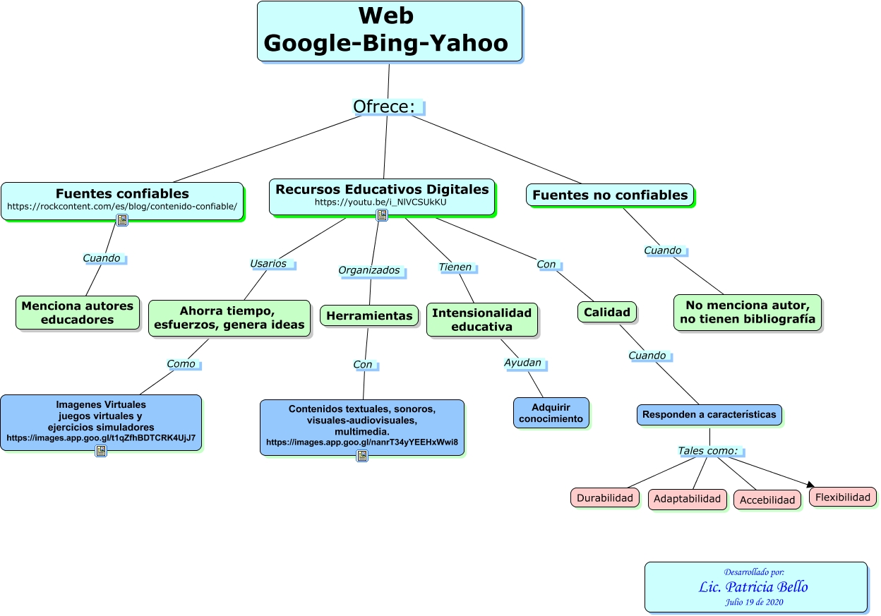 Este Cmap, tiene información relacionada con: Diseño Patricia, Ahorra tiempo, esfuerzos, genera ideas Como Imagenes Virtuales juegos virtuales y ejercicios simuladores https://images.app.goo.gl/t1qZfhBDTCRK4UjJ7, Recursos Educativos Digitales https://youtu.be/i_NlVCSUkKU Organizados Herramientas, Web Google-Bing-Yahoo Ofrece: Fuentes confiables https://rockcontent.com/es/blog/contenido-confiable/, Web Google-Bing-Yahoo Ofrece: Fuentes no confiables, Herramientas Con Contenidos textuales, sonoros, visuales-audiovisuales, multimedia. https://images.app.goo.gl/nanrT34yYEEHxWwi8, Fuentes confiables https://rockcontent.com/es/blog/contenido-confiable/ Cuando Menciona autores educadores, Recursos Educativos Digitales https://youtu.be/i_NlVCSUkKU Usarios Ahorra tiempo, esfuerzos, genera ideas, Responden a características Tales como: Accebilidad, Fuentes no confiables Cuando No menciona autor, no tienen bibliografía, Recursos Educativos Digitales https://youtu.be/i_NlVCSUkKU Con Calidad, Intensionalidad educativa Ayudan Adquirir conocimiento, Responden a características Tales como: Durabilidad, Responden a características Tales como: Adaptabilidad, Responden a características Tales como: Flexibilidad, Recursos Educativos Digitales https://youtu.be/i_NlVCSUkKU Tienen Intensionalidad educativa, Web Google-Bing-Yahoo Ofrece: Recursos Educativos Digitales https://youtu.be/i_NlVCSUkKU, Calidad Cuando Responden a características