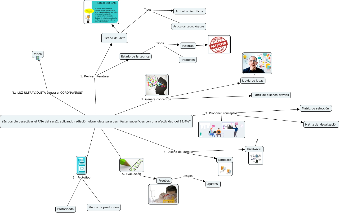 Este Cmap, tiene información relacionada con: Mapa mental Gerencia, ¿Es posible desactivar el RNA del sars2, aplicando radiación ultravioleta para desinfectar superficies con una efectividad del 99,9%? "La LUZ ULTRAVIOLETA contra el CORONAVIRUS" video, Pruebas Riesgos ajustes, Estado de la tecnica Tipos Productos, Lluvia de ideas, ¿Es posible desactivar el RNA del sars2, aplicando radiación ultravioleta para desinfectar superficies con una efectividad del 99,9%? 1. Revisar literatura Estado del Arte, ¿Es posible desactivar el RNA del sars2, aplicando radiación ultravioleta para desinfectar superficies con una efectividad del 99,9%? 3. Proponer conceptos Matriz de selección, ¿Es posible desactivar el RNA del sars2, aplicando radiación ultravioleta para desinfectar superficies con una efectividad del 99,9%? 2. Genera conceptos Lluvia de ideas, ¿Es posible desactivar el RNA del sars2, aplicando radiación ultravioleta para desinfectar superficies con una efectividad del 99,9%? 5. Evaluación Pruebas, ¿Es posible desactivar el RNA del sars2, aplicando radiación ultravioleta para desinfectar superficies con una efectividad del 99,9%? 1. Revisar literatura Estado de la tecnica, ¿Es posible desactivar el RNA del sars2, aplicando radiación ultravioleta para desinfectar superficies con una efectividad del 99,9%? 3. Proponer conceptos Matriz de visualización, Hardware, ¿Es posible desactivar el RNA del sars2, aplicando radiación ultravioleta para desinfectar superficies con una efectividad del 99,9%? 4. Diseño del detalle Hardware, Estado del Arte Tipos Artículos tecnológicos, Estado del Arte, ¿Es posible desactivar el RNA del sars2, aplicando radiación ultravioleta para desinfectar superficies con una efectividad del 99,9%? 3. Proponer conceptos, ¿Es posible desactivar el RNA del sars2, aplicando radiación ultravioleta para desinfectar superficies con una efectividad del 99,9%? 2. Genera conceptos Partir de diseños previos, ¿Es posible desactivar el RNA del sars2, aplicando radiación ultravioleta para desinfectar superficies con una efectividad del 99,9%? 4. Diseño del detalle Software, Patentes, ¿Es posible desactivar el RNA del sars2, aplicando radiación ultravioleta para desinfectar superficies con una efectividad del 99,9%? 6. Prototipo Prototipado, Estado de la tecnica Tipos Patentes