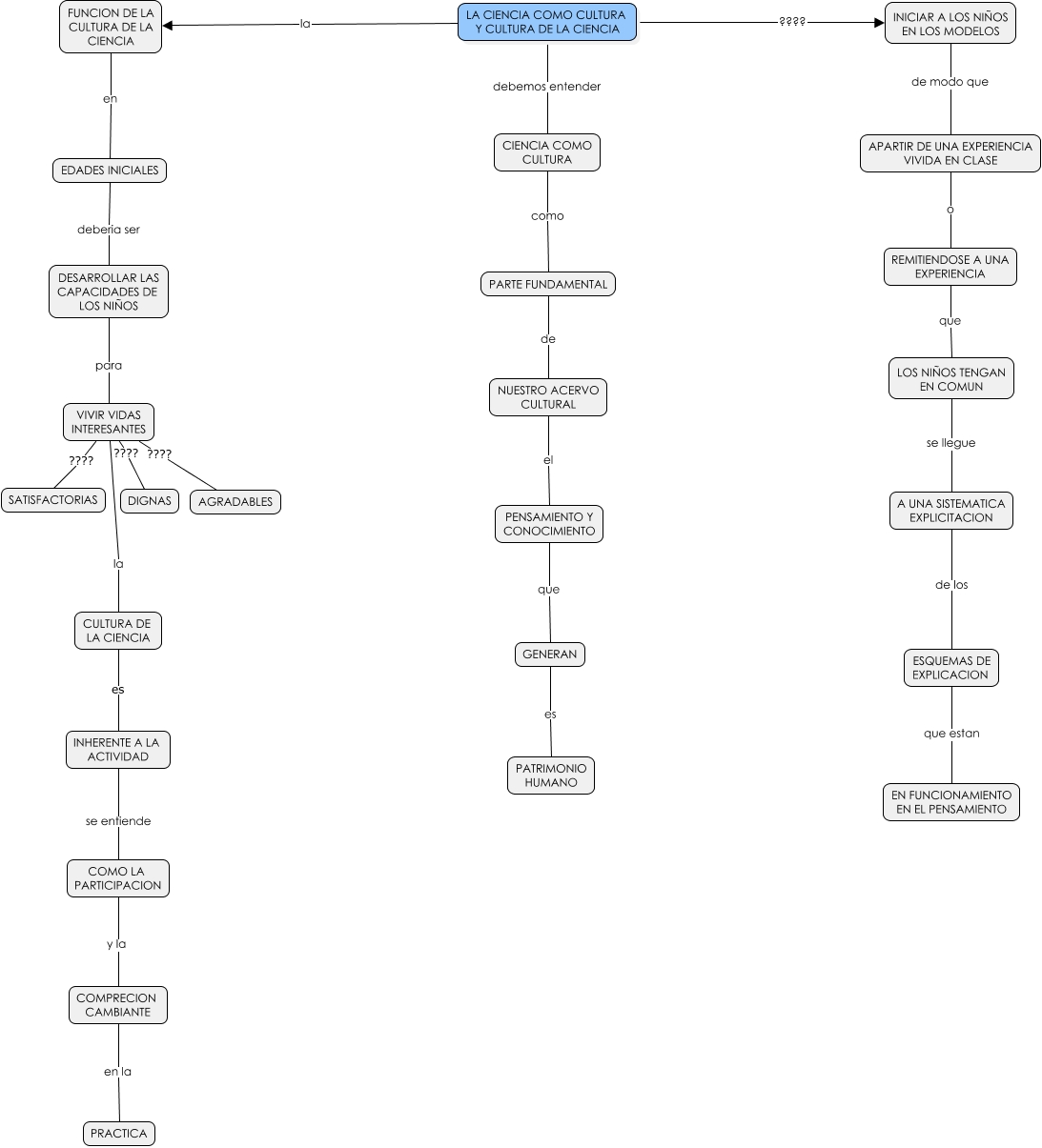 Este Cmap, tiene información relacionada con: Mapa Conceptual, CIENCIA COMO CULTURA como PARTE FUNDAMENTAL, VIVIR VIDAS INTERESANTES la CULTURA DE LA CIENCIA, CULTURA DE LA CIENCIA es INHERENTE A LA ACTIVIDAD, GENERAN es PATRIMONIO HUMANO, NUESTRO ACERVO CULTURAL el PENSAMIENTO Y CONOCIMIENTO, VIVIR VIDAS INTERESANTES ???? DIGNAS, LA CIENCIA COMO CULTURA Y CULTURA DE LA CIENCIA debemos entender CIENCIA COMO CULTURA, INHERENTE A LA ACTIVIDAD se entiende COMO LA PARTICIPACION, LA CIENCIA COMO CULTURA Y CULTURA DE LA CIENCIA ???? INICIAR A LOS NIÑOS EN LOS MODELOS, INICIAR A LOS NIÑOS EN LOS MODELOS de modo que APARTIR DE UNA EXPERIENCIA VIVIDA EN CLASE, REMITIENDOSE A UNA EXPERIENCIA que LOS NIÑOS TENGAN EN COMUN, A UNA SISTEMATICA EXPLICITACION de los ESQUEMAS DE EXPLICACION, FUNCION DE LA CULTURA DE LA CIENCIA en EDADES INICIALES, LOS NIÑOS TENGAN EN COMUN se llegue A UNA SISTEMATICA EXPLICITACION, APARTIR DE UNA EXPERIENCIA VIVIDA EN CLASE o REMITIENDOSE A UNA EXPERIENCIA, EDADES INICIALES deberia ser DESARROLLAR LAS CAPACIDADES DE LOS NIÑOS, VIVIR VIDAS INTERESANTES ???? AGRADABLES, COMO LA PARTICIPACION y la COMPRECION CAMBIANTE, PARTE FUNDAMENTAL de NUESTRO ACERVO CULTURAL, ESQUEMAS DE EXPLICACION que estan EN FUNCIONAMIENTO EN EL PENSAMIENTO
