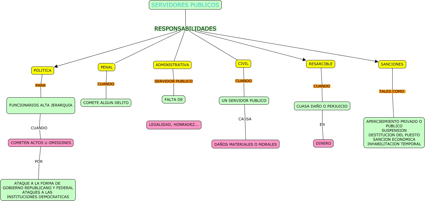 Este Cmap, tiene información relacionada con: SERVIDORES PUBLICOS, SANCIONES TALES COMO APERCIBIMIENTO PRIVADO O PUBLICO SUSPENSION DESTITUCION DEL PUESTO SANCION ECONOMICA INHABILITACION TEMPORAL, SERVIDORES PUBLICOS RESPONSABILIDADES ADMINISTRATIVA, CUASA DAÑO O PERJUICIO EN DINERO, SERVIDORES PUBLICOS RESPONSABILIDADES CIVIL, SERVIDORES PUBLICOS RESPONSABILIDADES RESARCIBLE, COMETEN ACTOS U OMISIONES POR ATAQUE A LA FORMA DE GOBIERNO REPUBLICANO Y FEDERAL ATAQUES A LAS INSTITUCIONES DEMOCRATICAS, SERVIDORES PUBLICOS RESPONSABILIDADES PENAL, SERVIDORES PUBLICOS RESPONSABILIDADES SANCIONES, FUNCIONARIOS ALTA JERARQUIA CUANDO COMETEN ACTOS U OMISIONES, SERVIDORES PUBLICOS RESPONSABILIDADES POLITICA, ADMINISTRATIVA SERVIDOR PUBLICO FALTA DE, PENAL CUANDO COMETE ALGUN DELITO, UN SERVIDOR PUBLICO CAUSA DAÑOS MATERIALES O MORALES, POLITICA PARA FUNCIONARIOS ALTA JERARQUIA, CIVIL CUANDO UN SERVIDOR PUBLICO, RESARCIBLE CUANDO CUASA DAÑO O PERJUICIO