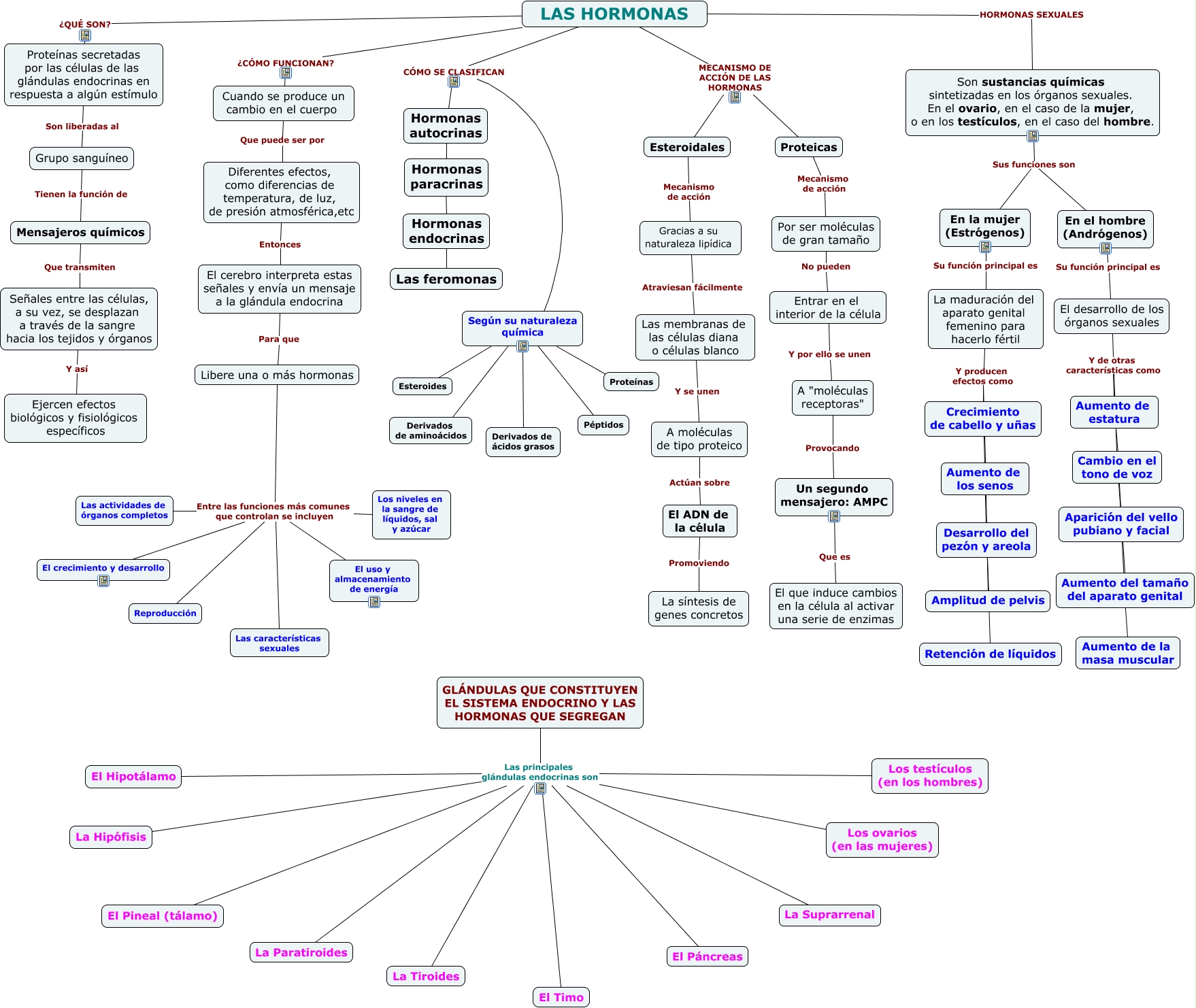 Este Cmap, tiene información relacionada con: HORMONAS-KARIN COLOMBO-, Libere una o más hormonas Entre las funciones más comunes que controlan se incluyen Reproducción, La maduración del aparato genital femenino para hacerlo fértil Y producen efectos como Aumento de los senos, Las membranas de las células diana o células blanco Y se unen A moléculas de tipo proteico, Libere una o más hormonas Entre las funciones más comunes que controlan se incluyen Las características sexuales, Aumento de los senos ???? Amplitud de pelvis, GLÁNDULAS QUE CONSTITUYEN EL SISTEMA ENDOCRINO Y LAS HORMONAS QUE SEGREGAN Las principales glándulas endocrinas son Los testículos (en los hombres), GLÁNDULAS QUE CONSTITUYEN EL SISTEMA ENDOCRINO Y LAS HORMONAS QUE SEGREGAN Las principales glándulas endocrinas son Los ovarios (en las mujeres), El ADN de la célula Promoviendo La síntesis de genes concretos, Entrar en el interior de la célula Y por ello se unen A "moléculas receptoras", Proteínas secretadas por las células de las glándulas endocrinas en respuesta a algún estímulo Son liberadas al Grupo sanguíneo, El desarrollo de los órganos sexuales Y de otras características como Cambio en el tono de voz, Crecimiento de cabello y uñas ???? Desarrollo del pezón y areola, En la mujer (Estrógenos) Su función principal es La maduración del aparato genital femenino para hacerlo fértil, Desarrollo del pezón y areola ???? Retención de líquidos, GLÁNDULAS QUE CONSTITUYEN EL SISTEMA ENDOCRINO Y LAS HORMONAS QUE SEGREGAN Las principales glándulas endocrinas son La Tiroides, La maduración del aparato genital femenino para hacerlo fértil Y producen efectos como Crecimiento de cabello y uñas, El desarrollo de los órganos sexuales Y de otras características como Aumento de estatura, Según su naturaleza química ???? Esteroides, Hormonas endocrinas ???? Las feromonas, GLÁNDULAS QUE CONSTITUYEN EL SISTEMA ENDOCRINO Y LAS HORMONAS QUE SEGREGAN Las principales glándulas endocrinas son La Paratiroides