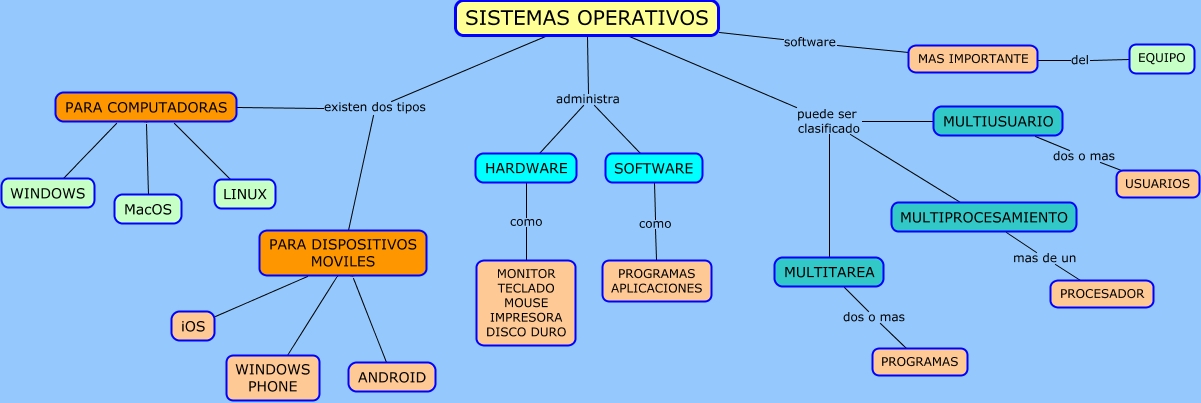Este Cmap, tiene información relacionada con: SISTEMAS OPERATIVOS, SISTEMAS OPERATIVOS puede ser clasificado MULTIPROCESAMIENTO, PARA COMPUTADORAS . WINDOWS, PARA DISPOSITIVOS MOVILES . WINDOWS PHONE, MULTIUSUARIO dos o mas USUARIOS, SISTEMAS OPERATIVOS puede ser clasificado MULTIUSUARIO, HARDWARE como MONITOR TECLADO MOUSE IMPRESORA DISCO DURO, SISTEMAS OPERATIVOS puede ser clasificado MULTITAREA, MULTIPROCESAMIENTO mas de un PROCESADOR, PARA DISPOSITIVOS MOVILES . ANDROID, PARA COMPUTADORAS . LINUX, MAS IMPORTANTE del EQUIPO, SISTEMAS OPERATIVOS software MAS IMPORTANTE, SISTEMAS OPERATIVOS existen dos tipos PARA COMPUTADORAS, SISTEMAS OPERATIVOS administra SOFTWARE, SISTEMAS OPERATIVOS administra HARDWARE, SOFTWARE como PROGRAMAS APLICACIONES, MULTITAREA dos o mas PROGRAMAS, PARA COMPUTADORAS . MacOS, PARA DISPOSITIVOS MOVILES . iOS, SISTEMAS OPERATIVOS existen dos tipos PARA DISPOSITIVOS MOVILES