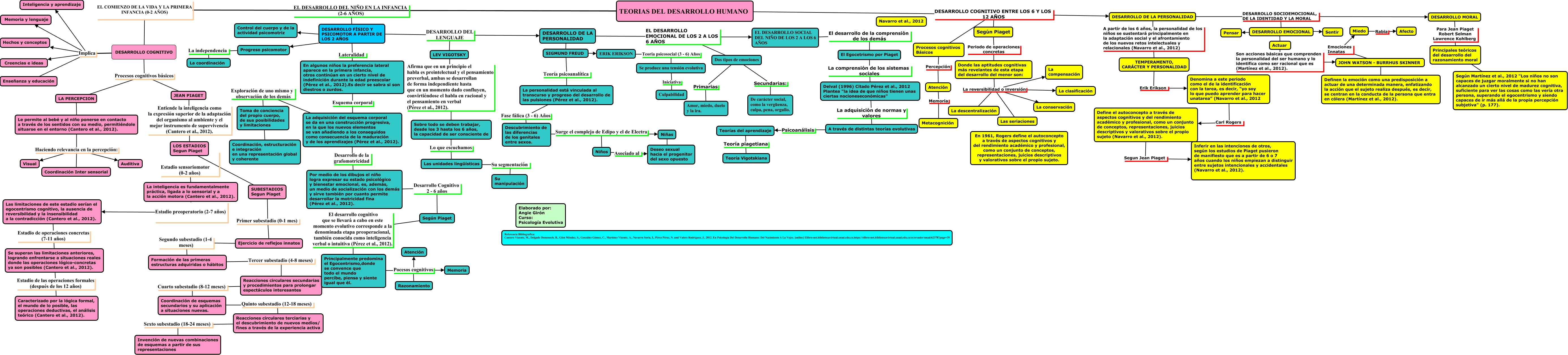 Este Cmap, tiene información relacionada con: TEORIAS DEL DESARROLLO HUMANO, La adquisición del esquema corporal se da en una construcción progresiva, en la que los nuevos elementos se van añadiendo a los conseguidos como consecuencia de la maduración y de los aprendizajes (Pérez et al., 2012). Exploración de uno mismo y observación de los demás Toma de conciencia del propio cuerpo, de sus posibilidades y limitaciones, Donde las aptitudes cognitivas más revelantes de esta etapa del desarrollo del menor son: La reversibilidad o inversión La conservación, En algunos niños la preferencia lateral aparece en la primera infancia, otros continúan en un cierto nivel de indefinición durante la edad preescolar (Pérez et al., 2012).Es decir se sabra si son diestros o zurdos. Esquema corporal La adquisición del esquema corporal se da en una construcción progresiva, en la que los nuevos elementos se van añadiendo a los conseguidos como consecuencia de la maduración y de los aprendizajes (Pérez et al., 2012)., JOHN WATSON - BURRHUS SKINNER ???? Definen la emoción como una predisposición a actuar de una determinada manera, enfatizando la acción que el sujeto realiza después, es decir, se centran en la conducta de la persona que entra en cólera (Martínez et al., 2012)., DESARROLLO FÍSICO Y PSICOMOTOR A PARTIR DE LOS 2 AÑOS ???? Progreso psicomotor, La adquisición del esquema corporal se da en una construcción progresiva, en la que los nuevos elementos se van añadiendo a los conseguidos como consecuencia de la maduración y de los aprendizajes (Pérez et al., 2012). Desarrollo de la grafomotricidad Por medio de los dibujos el niño logra expresar su estado psicológico y bienestar emocional, es, además, un medio de socialización con los demás y sirve también por cuanto permite desarrollar la motricidad fina (Pérez et al., 2012)., Le permite al bebé y al niño ponerse en contacto a través de los sentidos con su medio, permitiéndole situarse en el entorno (Cantero et al., 2012). Haciendo relevancia en la percepción: Auditiva, LA PERCEPCION ???? Le permite al bebé y al niño ponerse en contacto a través de los sentidos con su medio, permitiéndole situarse en el entorno (Cantero et al., 2012)., JEAN PIAGET Entiende la inteligencia como la expresión superior de la adaptación del organismo al ambiente y el mejor instrumento de supervivencia (Cantero et al., 2012). LOS ESTADIOS Segun Piaget, Según Piaget El desarrollo cognitivo que se llevará a cabo en este momento evolutivo corresponde a la denominada etapa preoperacional, también conocida como inteligencia verbal o intuitiva (Pérez et al., 2012). Principalmente predomina el Egocentrismo,donde se convence que todo el mundo percibe, piensa y siente igual que él., A través de distintas teorías evolutivas Psicoanálisis Teorías del aprendizaje, DESARROLLO COGNITIVO Implica Enseñanza y educación, Reacciones circulares secundarias y procedimientos para prolongar espectáculos interesantes Cuarto subestadio (8-12 meses) Coordinación de esquemas secundarios y su aplicación a situaciones nuevas., SIGMUND FREUD ???? ERIK ERIKSON, Las limitaciones de este estadio serían el egocentrismo cognitivo, la ausencia de reversibilidad y la insensibilidad a la contradicción (Cantero et al., 2012). Estadio de operaciones concretas (7-11 años) Se superan las limitaciones anteriores, logrando enfrentarse a situaciones reales donde las operaciones lógico-concretas ya son posibles (Cantero et al., 2012)., DESARROLLO COGNITIVO Procesos cognitivos básicos LA PERCEPCION, Actuar Son acciones básicas que comprenden la personalidad del ser humano y lo identifica como ser racional que es (Martínez et al., 2012). JOHN WATSON - BURRHUS SKINNER, Principalmente predomina el Egocentrismo,donde se convence que todo el mundo percibe, piensa y siente igual que él. Pocesos cognitivos Memoria, DESARROLLO DE LA PERSONALIDAD DESARROLLO SOCIOEMOCIONAL, DE LA IDENTIDAD Y LA MORAL DESARROLLO MORAL, Teorías del aprendizaje Teoría piagetiana Teoría Vigotskiana