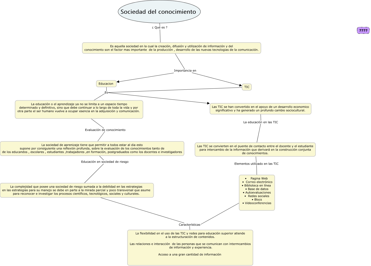 Este Cmap, tiene información relacionada con: Actividad TIC 2, • Pagina Web • Correo electrónico • Biblioteca en línea • Base de datos • Autoevaluaciones • Redes sociales • Blocs • Videoconferencias Características La flexibilidad en el uso de las TIC y redes para educación superior atiende a la estructuración de contenidos. Las relaciones e interacción de las personas que se comunican con intermcambios de información y experiencia. Acceso a una gran cantidad de información, Educacion Es La educación o el aprendizaje ya no se limita a un espacio tiempo determinado y definitivo, sino que debe continuar a lo largo de toda la vida y por otra parte el ser humano vuelve a ocupar esencia en la adquisición y comunicación., La sociedad de aprenizaje tiene que permitir a todos estar al dia esto supone por consiguiente una reflexión profunda, sobre la evaluación de los conocimientos tanto de de los educandos , escolares , estudiantes ,trabajadores ,en formación, postgraduados como los docentes e investigadores Educación en sociedad de riesgo La complejidad que posee una sociedad de riesgo sumada a la debilidad en las estrategias en las estrategias para su manejo se debe en parte a la mirada parcial y poco transversal que asume para reconocer e investigar los procesos científicos, tecnológicos, sociales y culturales., La educación o el aprendizaje ya no se limita a un espacio tiempo determinado y definitivo, sino que debe continuar a lo largo de toda la vida y por otra parte el ser humano vuelve a ocupar esencia en la adquisición y comunicación. Evaluación de conocimiento La sociedad de aprenizaje tiene que permitir a todos estar al dia esto supone por consiguiente una reflexión profunda, sobre la evaluación de los conocimientos tanto de de los educandos , escolares , estudiantes ,trabajadores ,en formación, postgraduados como los docentes e investigadores, Las TIC se han convertido en el apoyo de un desarrollo economico significativo y ha generado un profundo cambio sociocultural. La educación en las TIC Las TIC se convierten en el puente de contacto entre el docente y el estudiante para intercambio de la información que derivará en la construcción conjunta de conocimientos., Es aquella sociedad en la cual la creación, difusión y utilización de información y del conocimiento son el factor mas importante de la producción , desarrollo de las nuevas tecnologias de la comunicación. Importancia en TIC, Las TIC se convierten en el puente de contacto entre el docente y el estudiante para intercambio de la información que derivará en la construcción conjunta de conocimientos. Elementos utilizado en las TIC • Pagina Web • Correo electrónico • Biblioteca en línea • Base de datos • Autoevaluaciones • Redes sociales • Blocs • Videoconferencias, La complejidad que posee una sociedad de riesgo sumada a la debilidad en las estrategias en las estrategias para su manejo se debe en parte a la mirada parcial y poco transversal que asume para reconocer e investigar los procesos científicos, tecnológicos, sociales y culturales. Características La flexibilidad en el uso de las TIC y redes para educación superior atiende a la estructuración de contenidos. Las relaciones e interacción de las personas que se comunican con intermcambios de información y experiencia. Acceso a una gran cantidad de información, TIC Es La educación o el aprendizaje ya no se limita a un espacio tiempo determinado y definitivo, sino que debe continuar a lo largo de toda la vida y por otra parte el ser humano vuelve a ocupar esencia en la adquisición y comunicación., Es aquella sociedad en la cual la creación, difusión y utilización de información y del conocimiento son el factor mas importante de la producción , desarrollo de las nuevas tecnologias de la comunicación. Importancia en Educacion, TIC Es Las TIC se han convertido en el apoyo de un desarrollo economico significativo y ha generado un profundo cambio sociocultural., Educacion Es Las TIC se han convertido en el apoyo de un desarrollo economico significativo y ha generado un profundo cambio sociocultural., Sociedad del conocimiento ¿ Qué es ? ????