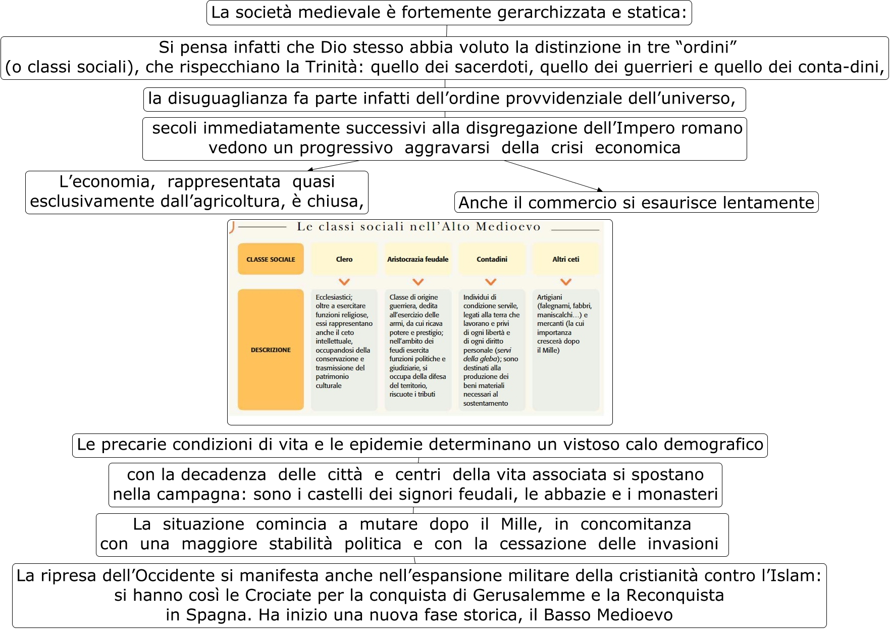 Questa Cmap, creata con IHMC CmapTools, contiene informazioni relative a: medioevo latino2, con la decadenza delle città e centri della vita associata si spostano nella campagna: sono i castelli dei signori feudali, le abbazie e i monasteri ???? La situazione comincia a mutare dopo il Mille, in concomitanza con una maggiore stabilità politica e con la cessazione delle invasioni, secoli immediatamente successivi alla disgregazione dell’Impero romano vedono un progressivo aggravarsi della crisi economica ???? Anche il commercio si esaurisce lentamente, Le precarie condizioni di vita e le epidemie determinano un vistoso calo demografico ???? con la decadenza delle città e centri della vita associata si spostano nella campagna: sono i castelli dei signori feudali, le abbazie e i monasteri, La società medievale è fortemente gerarchizzata e statica: ???? Si pensa infatti che Dio stesso abbia voluto la distinzione in tre “ordini�? (o classi sociali), che rispecchiano la Trinità: quello dei sacerdoti, quello dei guerrieri e quello dei conta-dini,, La situazione comincia a mutare dopo il Mille, in concomitanza con una maggiore stabilità politica e con la cessazione delle invasioni ???? La ripresa dell’Occidente si manifesta anche nell’espansione militare della cristianità contro l’Islam: si hanno così le Crociate per la conquista di Gerusalemme e la Reconquista in Spagna. Ha inizio una nuova fase storica, il Basso Medioevo, Si pensa infatti che Dio stesso abbia voluto la distinzione in tre “ordini�? (o classi sociali), che rispecchiano la Trinità: quello dei sacerdoti, quello dei guerrieri e quello dei conta-dini, ???? la disuguaglianza fa parte infatti dell’ordine provvidenziale dell’universo,, secoli immediatamente successivi alla disgregazione dell’Impero romano vedono un progressivo aggravarsi della crisi economica ???? L’economia, rappresentata quasi esclusivamente dall’agricoltura, è chiusa,, la disuguaglianza fa parte infatti dell’ordine provvidenziale dell’universo, ???? secoli immediatamente successivi alla disgregazione dell’Impero romano vedono un progressivo aggravarsi della crisi economica