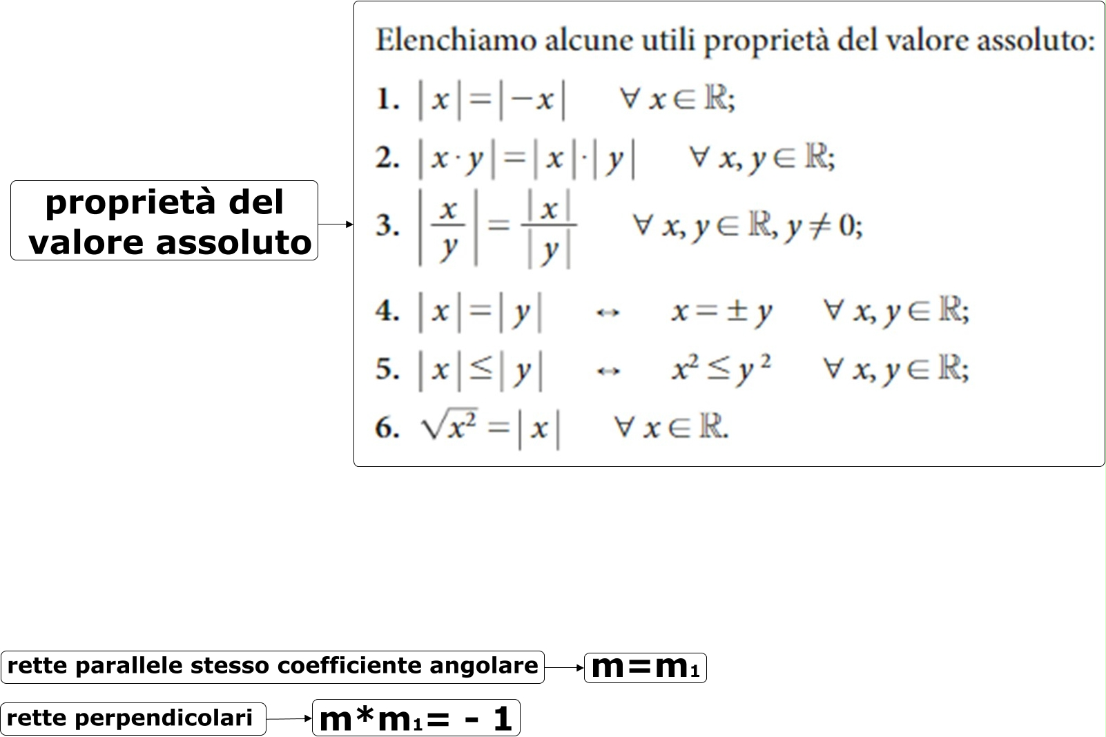 Questa Cmap, creata con IHMC CmapTools, contiene informazioni relative a: formulario3, proprietà del valore assoluto ????, rette parallele stesso coefficiente angolare ???? m=m1, rette perpendicolari ???? m*m1= - 1