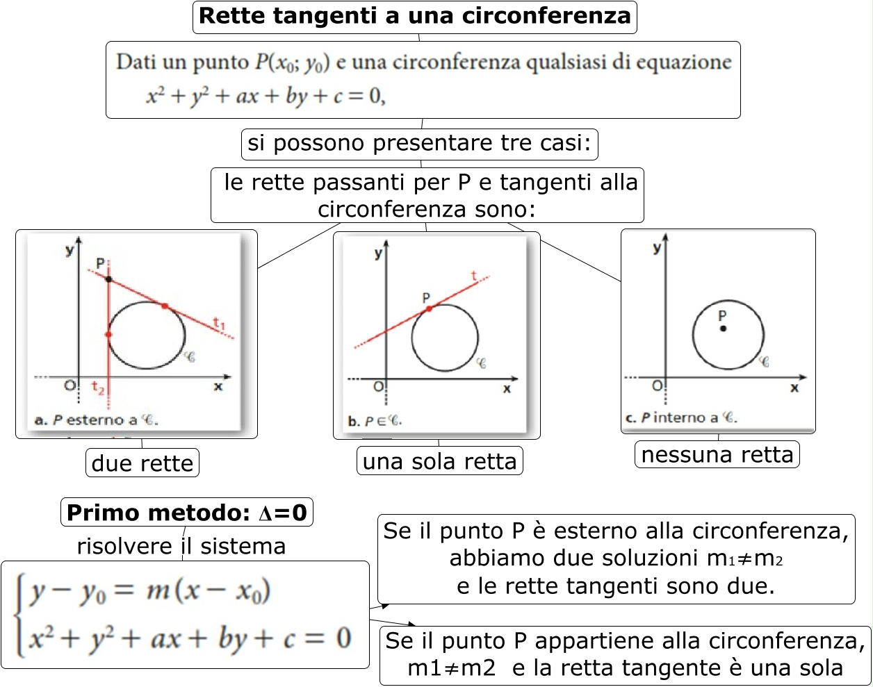 Questa Cmap, creata con IHMC CmapTools, contiene informazioni relative a: circonferenza 249, si possono presentare tre casi: ????, Primo metodo: Δ=0 risolvere il sistema, ???? Se il punto P appartiene alla circonferenza, m1≠m2 e la retta tangente è una sola, ???? si possono presentare tre casi:, ???? Se il punto P è esterno alla circonferenza, abbiamo due soluzioni m1≠m2 e le rette tangenti sono due., ???? nessuna retta, Rette tangenti a una circonferenza ????, si possono presentare tre casi: ????, si possono presentare tre casi: ????, ???? due rette, ???? una sola retta