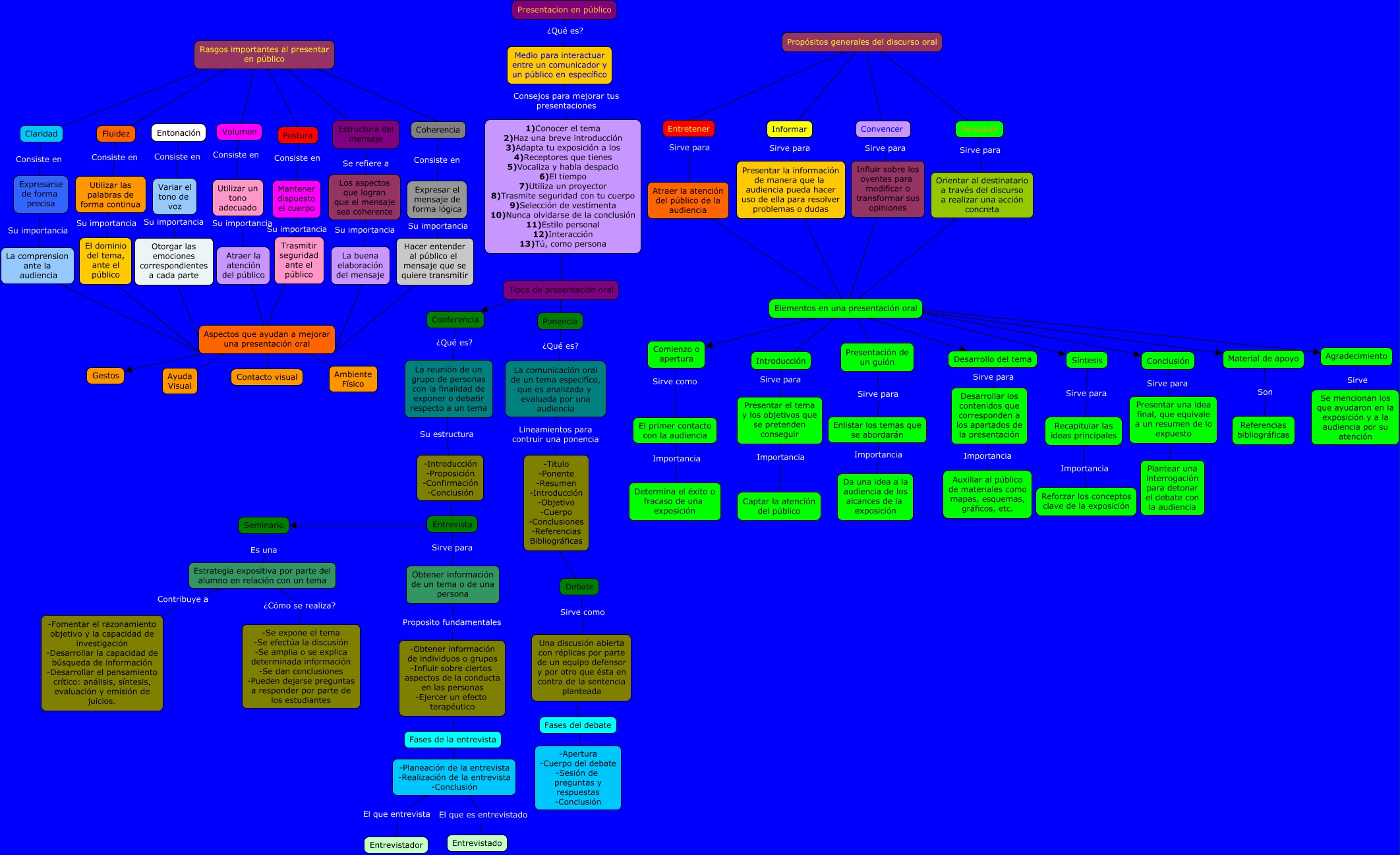 Este Cmap, tiene información relacionada con: Mapa conceptual de Español DIMENSION 3 (1.5), Propósitos generales del discurso oral ???? Informar, Presentacion en público ¿Qué es? Medio para interactuar entre un comunicador y un público en específico, Persuadir Sirve para Orientar al destinatario a través del discurso a realizar una acción concreta, Aspectos que ayudan a mejorar una presentación oral ???? Contacto visual, Presentación de un guión Sirve para Enlistar los temas que se abordarán, -Planeación de la entrevista -Realización de la entrevista -Conclusión El que entrevista Entrevistador, Atraer la atención del público ???? Aspectos que ayudan a mejorar una presentación oral, Elementos en una presentación oral ???? Comienzo o apertura, Elementos en una presentación oral ???? Desarrollo del tema, Fases del debate ???? -Apertura -Cuerpo del debate -Sesión de preguntas y respuestas -Conclusión, Desarrollo del tema Sirve para Desarrollar los contenidos que corresponden a los apartados de la presentación, El dominio del tema, ante el público ???? Aspectos que ayudan a mejorar una presentación oral, Rasgos importantes al presentar en público ???? Postura, Influir sobre los oyentes para modificar o transformar sus opiniones ???? Elementos en una presentación oral, Informar Sirve para Presentar la información de manera que la audiencia pueda hacer uso de ella para resolver problemas o dudas, -Introducción -Proposición -Confirmación -Conclusión ???? Entrevista, Elementos en una presentación oral ???? Material de apoyo, Tipos de presentación oral ???? Ponencia, Medio para interactuar entre un comunicador y un público en específico Consejos para mejorar tus presentaciones 1)Conocer el tema 2)Haz una breve introducción 3)Adapta tu exposición a los 4)Receptores que tienes 5)Vocaliza y habla despacio 6)El tiempo 7)Utiliza un proyector 8)Trasmite seguridad con tu cuerpo 9)Selección de vestimenta 10)Nunca olvidarse de la conclusión 11)Estilo personal 12)Interacción 13)Tú, como persona, Conferencia ¿Qué es? La reunión de un grupo de personas con la finalidad de exponer o debatir respecto a un tema