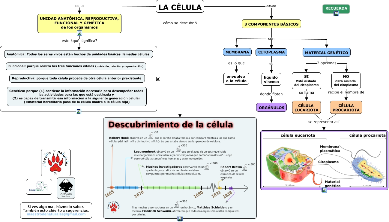 Este Cmap, tiene información relacionada con: Resumen del Tema 01 La célula, unidad básica de la vida, 3 COMPONENTES BÁSICOS son MEMBRANA, líquido viscoso donde flotan ORGÁNULOS, LA CÉLULA posee 3 COMPONENTES BÁSICOS, CITOPLASMA es líquido viscoso, MATERIAL GENÉTICO 2 opciones SI está aislada del citoplasma, UNIDAD ANATÓMICA, REPRODUCTIVA, FUNCIONAL Y GENÉTICA de los organismos esto ¿qué significa? Anatómica: Todos los seres vivos están hechos de unidades básicas llamadas células, CÉLULA PROCARIOTA se representa así, 3 COMPONENTES BÁSICOS son MATERIAL GENÉTICO, NO está aislada del citoplasma recibe el nombre de CÉLULA PROCARIOTA, CÉLULA EUCARIOTA se representa así, LA CÉLULA es la UNIDAD ANATÓMICA, REPRODUCTIVA, FUNCIONAL Y GENÉTICA de los organismos, LA CÉLULA cómo se descubrió, SI está aislada del citoplasma se llama CÉLULA EUCARIOTA, MATERIAL GENÉTICO 2 opciones NO está aislada del citoplasma, MEMBRANA es lo que envuelve a la célula, 3 COMPONENTES BÁSICOS son CITOPLASMA