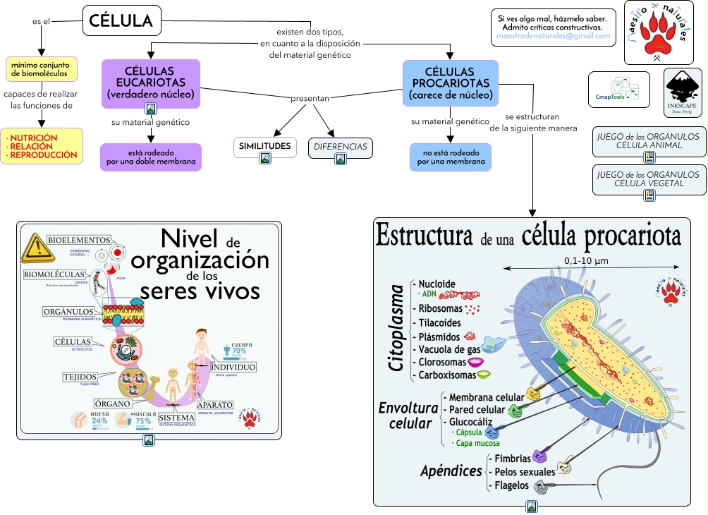 Este Cmap, tiene información relacionada con: Tema 01.04 La célula procariota, CÉLULAS EUCARIOTAS (verdadero núcleo) su material genético está rodeado por una doble membrana, CÉLULAS PROCARIOTAS (carece de núcleo) su material genético no está rodeado por una membrana, CÉLULAS EUCARIOTAS (verdadero núcleo) presentan SIMILITUDES, CÉLULA existen dos tipos, en cuanto a la disposición del material genético CÉLULAS EUCARIOTAS (verdadero núcleo), CÉLULAS EUCARIOTAS (verdadero núcleo) presentan DIFERENCIAS, CÉLULA es el mínimo conjunto de biomoléculas, CÉLULAS PROCARIOTAS (carece de núcleo) presentan DIFERENCIAS, CÉLULA existen dos tipos, en cuanto a la disposición del material genético CÉLULAS PROCARIOTAS (carece de núcleo), CÉLULAS PROCARIOTAS (carece de núcleo) presentan SIMILITUDES, CÉLULAS PROCARIOTAS (carece de núcleo) se estructuran de la siguiente manera, mínimo conjunto de biomoléculas capaces de realizar las funciones de · NUTRICIÓN · RELACIÓN · REPRODUCCIÓN