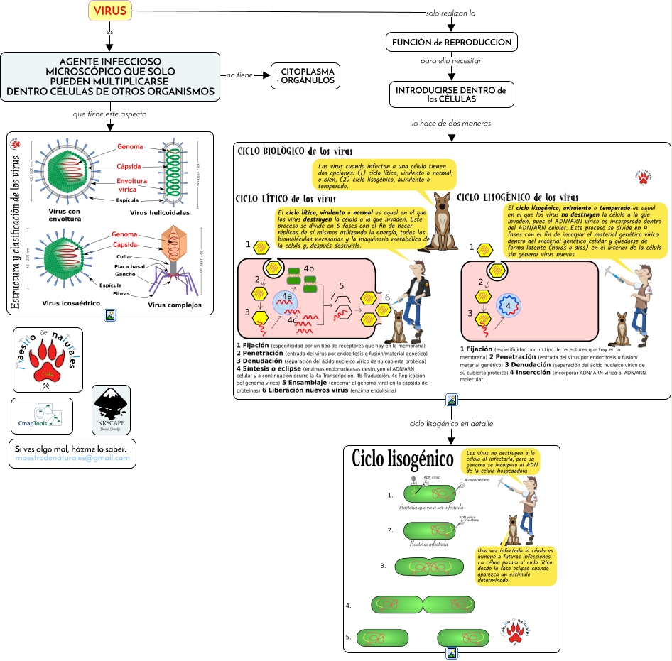 Este Cmap, tiene información relacionada con: Tema 04.07 Los virus, VIRUS solo realizan la FUNCIÓN de REPRODUCCIÓN, VIRUS es AGENTE INFECCIOSO MICROSCÓPICO QUE SÓLO PUEDEN MULTIPLICARSE DENTRO CÉLULAS DE OTROS ORGANISMOS, FUNCIÓN de REPRODUCCIÓN para ello necesitan INTRODUCIRSE DENTRO de las CÉLULAS, INTRODUCIRSE DENTRO de las CÉLULAS lo hace de dos maneras, AGENTE INFECCIOSO MICROSCÓPICO QUE SÓLO PUEDEN MULTIPLICARSE DENTRO CÉLULAS DE OTROS ORGANISMOS que tiene este aspecto, ciclo lisogénico en detalle, AGENTE INFECCIOSO MICROSCÓPICO QUE SÓLO PUEDEN MULTIPLICARSE DENTRO CÉLULAS DE OTROS ORGANISMOS no tiene · CITOPLASMA · ORGÁNULOS