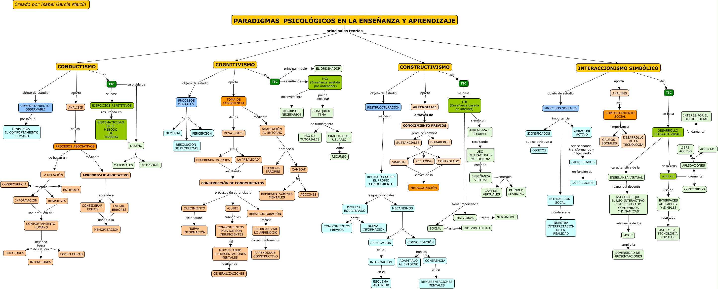 Este Cmap, tiene información relacionada con: PEC2. Mapa conceptual ISABEL GARCÍA MARTÍN, INDIVIDUAL frente NORMATIVO, PARADIGMAS PSICOLÓGICOS EN LA ENSEÑANZA Y APRENDIZAJE principales teorías INTERACCIONISMO SIMBÓLICO, COGNITIVISMO uso TIC, LA RELACIÓN entre CONSECUENCIA, TIC se entiende EAO (Enseñanza asistida por ordenador), COMPORTAMIENTO OBSERVABLE por lo que SIMPLIFICA EL COMPORTAMIENTO HUMANO, REFLEXIÓN SOBRE EL PROPIO CONOCIMIENTO rasgos principales PROCESO EQUILIBRADO, ADAPTACIÓN AL ENTORNO aprende a CORREGIR ERRORES, MODIFICANDO REPRESENTACIONES MENTALES resultando GENERALIZACIONES, DESAJUSTES entre RESPRESENTACIONES, APRENDIZAJE FLEXIBLE resaltando USO INTERACTIVO Y MULTIMEDIA, SUSTANCIALES es REFLEXIVO, APLICACIONES de LIBRE ACCESO, GRADUAL claves de la METACOGNICIÓN, APRENDIZAJE a través de CONOCIMIENTO PREVIOS, INTERACCIONISMO SIMBÓLICO uso TIC, ITB (Enseñanza basada en internet) toma importancia INDIVIDUAL, CAMBIAR las REPRESENTACIONES MENTALES, MOOC amplia la DIVERSIDAD DE PRESENTACIONES, PROCESOS ASOCIATIVOS se basan en LA RELACIÓN