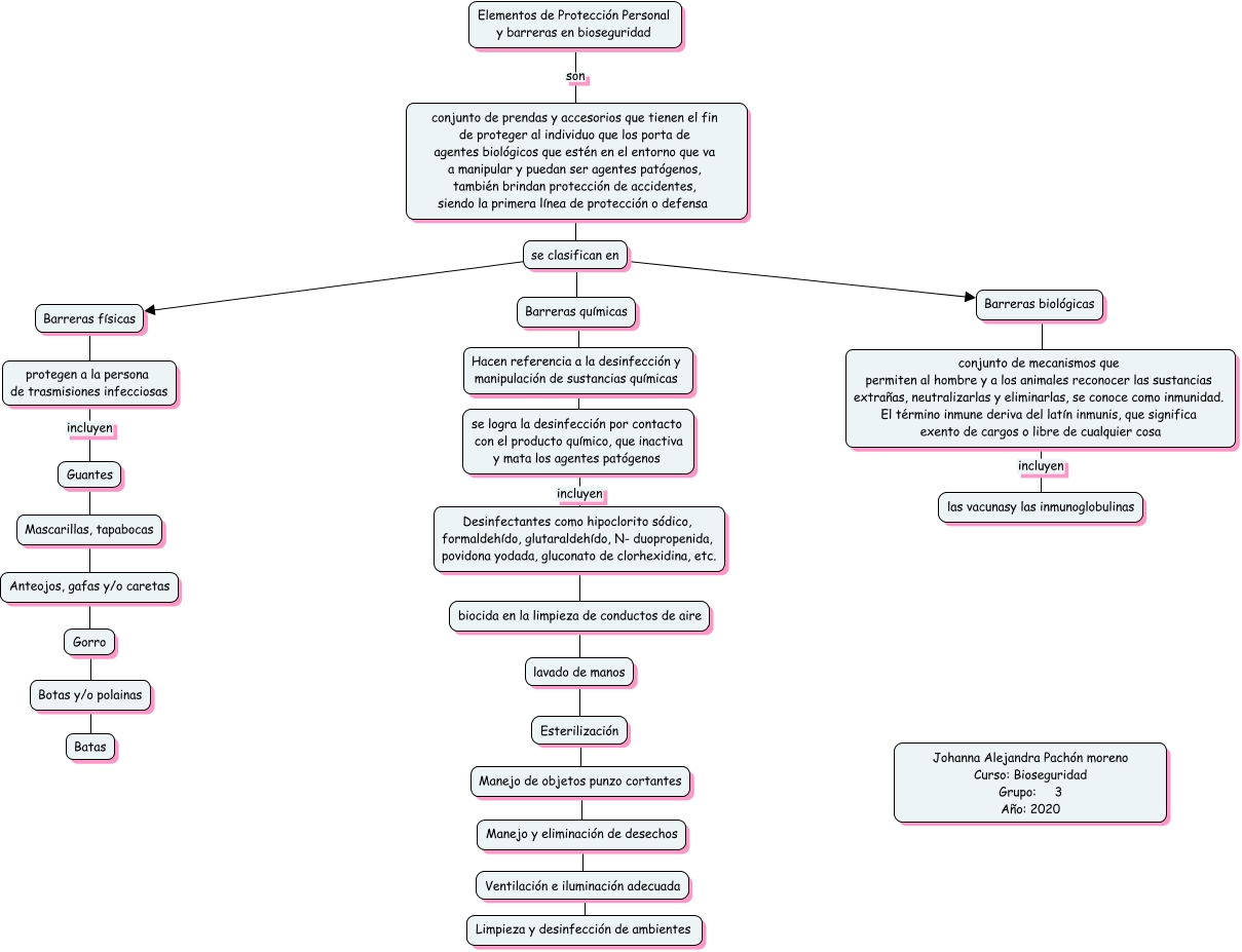 Este Cmap, tiene información relacionada con: AUTOCUIDADO Y BARRERAS DE PROTECCIÓN, Barreras físicas son protegen a la persona de trasmisiones infecciosas, Elementos de Protección Personal y barreras en bioseguridad son conjunto de prendas y accesorios que tienen el fin de proteger al individuo que los porta de agentes biológicos que estén en el entorno que va a manipular y puedan ser agentes patógenos, también brindan protección de accidentes, siendo la primera línea de protección o defensa, biocida en la limpieza de conductos de aire ???? lavado de manos, Hacen referencia a la desinfección y manipulación de sustancias químicas ???? se logra la desinfección por contacto con el producto químico, que inactiva y mata los agentes patógenos, Manejo y eliminación de desechos ???? Ventilación e iluminación adecuada, conjunto de prendas y accesorios que tienen el fin de proteger al individuo que los porta de agentes biológicos que estén en el entorno que va a manipular y puedan ser agentes patógenos, también brindan protección de accidentes, siendo la primera línea de protección o defensa ???? se clasifican en, conjunto de mecanismos que permiten al hombre y a los animales reconocer las sustancias extrañas, neutralizarlas y eliminarlas, se conoce como inmunidad. El término inmune deriva del latín inmunis, que significa exento de cargos o libre de cualquier cosa incluyen las vacunasy las inmunoglobulinas, Gorro ???? Botas y/o polainas, se clasifican en ???? Barreras físicas, Barreras biológicas ???? conjunto de mecanismos que permiten al hombre y a los animales reconocer las sustancias extrañas, neutralizarlas y eliminarlas, se conoce como inmunidad. El término inmune deriva del latín inmunis, que significa exento de cargos o libre de cualquier cosa, Desinfectantes como hipoclorito sódico, formaldehído, glutaraldehído, N- duopropenida, povidona yodada, gluconato de clorhexidina, etc. ???? biocida en la limpieza de conductos de aire, protegen a la persona de trasmisiones infecciosas incluyen Guantes, Barreras químicas ???? Hacen referencia a la desinfección y manipulación de sustancias químicas, Ventilación e iluminación adecuada ???? Limpieza y desinfección de ambientes, Esterilización ???? Manejo de objetos punzo cortantes, lavado de manos ???? Esterilización, se logra la desinfección por contacto con el producto químico, que inactiva y mata los agentes patógenos incluyen Desinfectantes como hipoclorito sódico, formaldehído, glutaraldehído, N- duopropenida, povidona yodada, gluconato de clorhexidina, etc., Anteojos, gafas y/o caretas ???? Gorro, Botas y/o polainas ???? Batas, se clasifican en ???? Barreras químicas