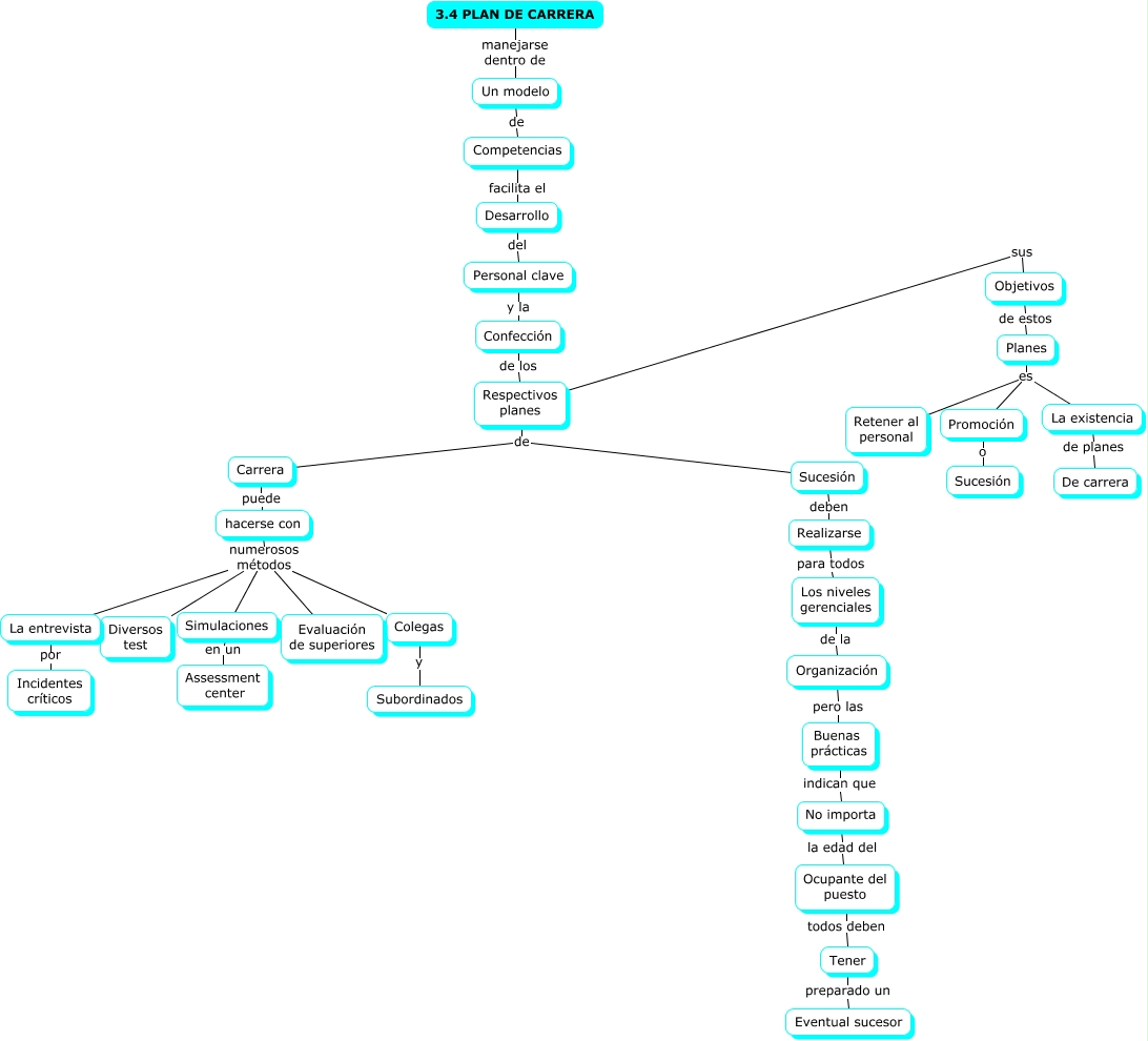 Este Cmap, tiene información relacionada con: 3.4 PLAN DE CARRERA, Competencias facilita el Desarrollo, hacerse con numerosos métodos Evaluación de superiores, Respectivos planes de Sucesión, Ocupante del puesto todos deben Tener, Respectivos planes de Carrera, Planes es Promoción, 3.4 PLAN DE CARRERA manejarse dentro de Un modelo, hacerse con numerosos métodos Colegas, Objetivos de estos Planes, Planes es Retener al personal, Personal clave y la Confección, Sucesión deben Realizarse, Respectivos planes sus Objetivos, Promoción o Sucesión, Organización pero las Buenas prácticas, Carrera puede hacerse con, Desarrollo del Personal clave, Realizarse para todos Los niveles gerenciales, Planes es La existencia, Los niveles gerenciales de la Organización