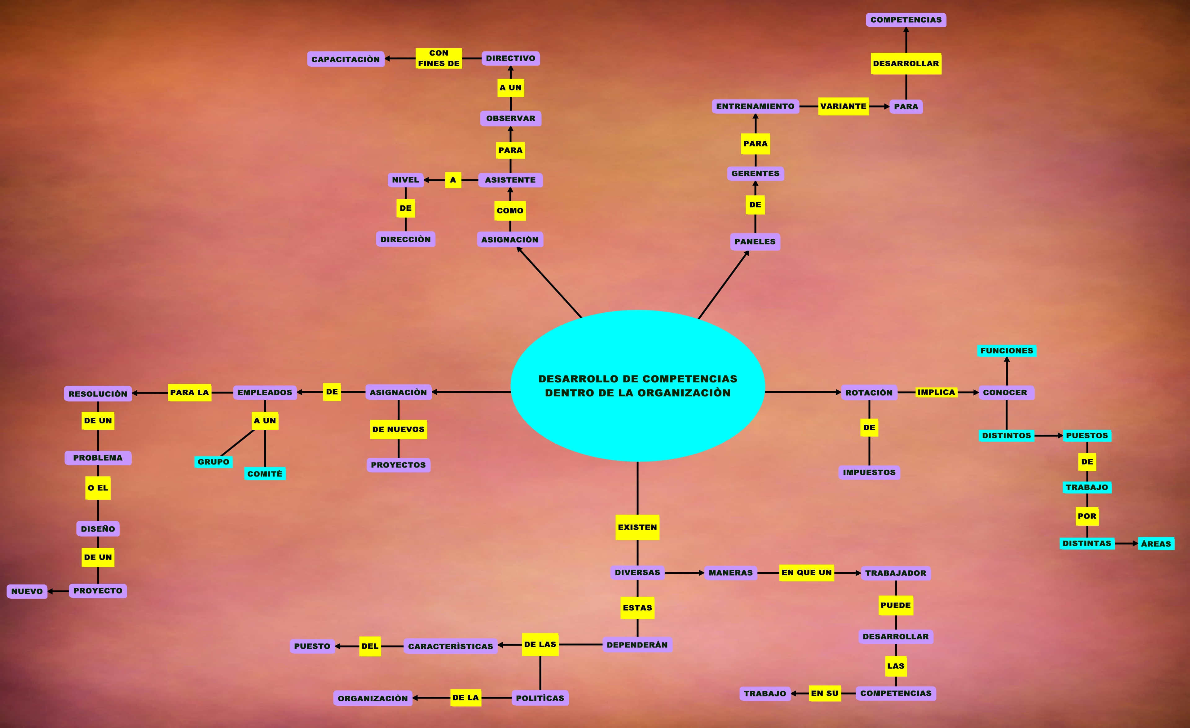 Este Cmap, tiene información relacionada con: DESARROLLO DE COMPETENCIAS DENTRO DE LA ORGANIZACIÒN, DESARROLLO DE COMPETENCIAS DENTRO DE LA ORGANIZACIÒN ???? PANELES, DEPENDERÀN DE LAS CARACTERÌSTICAS, EMPLEADOS PARA LA RESOLUCIÒN, RESOLUCIÒN DE UN PROBLEMA, ASISTENTE PARA OBSERVAR, OBSERVAR A UN DIRECTIVO, DIVERSAS ???? MANERAS, CONOCER ???? DISTINTOS, DIRECTIVO CON FINES DE CAPACITACIÒN, DESARROLLO DE COMPETENCIAS DENTRO DE LA ORGANIZACIÒN ???? ASIGNACIÒN, DIVERSAS ESTAS DEPENDERÀN, DESARROLLO DE COMPETENCIAS DENTRO DE LA ORGANIZACIÒN EXISTEN DIVERSAS, PROYECTO ???? NUEVO, ROTACIÒN DE IMPUESTOS, CARACTERÌSTICAS DEL PUESTO, PROBLEMA O EL DISEÑO, PUESTOS DE TRABAJO, CONOCER ???? FUNCIONES, EMPLEADOS A UN COMITÈ, DISEÑO DE UN PROYECTO
