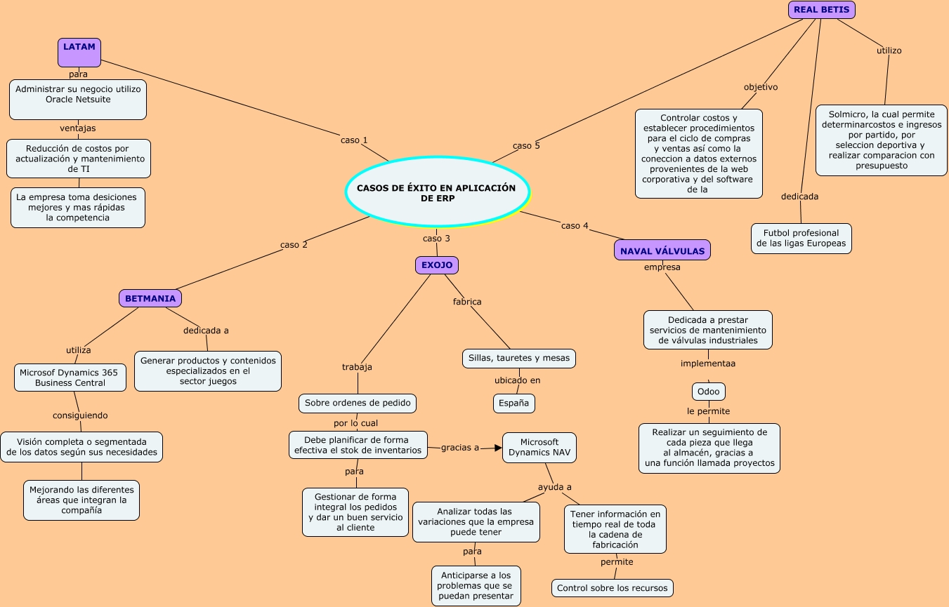 Este Cmap, tiene información relacionada con: ACTIVIDAD 2 ERP, EXOJO fabrica Sillas, tauretes y mesas, CASOS DE ÉXITO EN APLICACIÓN DE ERP caso 3 EXOJO, EXOJO trabaja Sobre ordenes de pedido, Odoo le permite Realizar un seguimiento de cada pieza que llega al almacén, gracias a una función llamada proyectos, CASOS DE ÉXITO EN APLICACIÓN DE ERP caso 4 NAVAL VÁLVULAS, Sillas, tauretes y mesas ubicado en España, Debe planificar de forma efectiva el stok de inventarios para Gestionar de forma integral los pedidos y dar un buen servicio al cliente, NAVAL VÁLVULAS empresa Dedicada a prestar servicios de mantenimiento de válvulas industriales, REAL BETIS utilizo Solmicro, la cual permite determinarcostos e ingresos por partido, por seleccion deportiva y realizar comparacion con presupuesto, BETMANIA utiliza Microsof Dynamics 365 Business Central, Visión completa o segmentada de los datos según sus necesidades ???? Mejorando las diferentes áreas que integran la compañía, REAL BETIS dedicada Futbol profesional de las ligas Europeas, Analizar todas las variaciones que la empresa puede tener para Anticiparse a los problemas que se puedan presentar, Reducción de costos por actualización y mantenimiento de TI ???? La empresa toma desiciones mejores y mas rápidas la competencia, Administrar su negocio utilizo Oracle Netsuite ventajas Reducción de costos por actualización y mantenimiento de TI, Microsoft Dynamics NAV ayuda a Tener información en tiempo real de toda la cadena de fabricación, CASOS DE ÉXITO EN APLICACIÓN DE ERP caso 5 REAL BETIS, CASOS DE ÉXITO EN APLICACIÓN DE ERP caso 2 BETMANIA, Microsof Dynamics 365 Business Central consiguiendo Visión completa o segmentada de los datos según sus necesidades, Dedicada a prestar servicios de mantenimiento de válvulas industriales implementaa Odoo