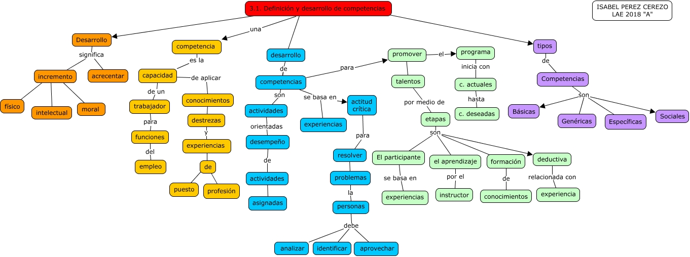 Este Cmap, tiene información relacionada con: 3.1. Definición y desarrollo de competencias, desempeño de actividades, competencias se basa en actitud crítica, 3.1. Definición y desarrollo de competencias una competencia, etapas son El participante, personas debe analizar, Desarrollo significa acrecentar, personas debe aprovechar, personas debe identificar, programa inicia con c. actuales, resolver ???? problemas, Competencias son Sociales, Desarrollo significa incremento, de ???? profesión, talentos por medio de etapas, capacidad de un trabajador, desarrollo de competencias, Competencias son Específicas, etapas son formación, competencias se basa en experiencias, promover el programa