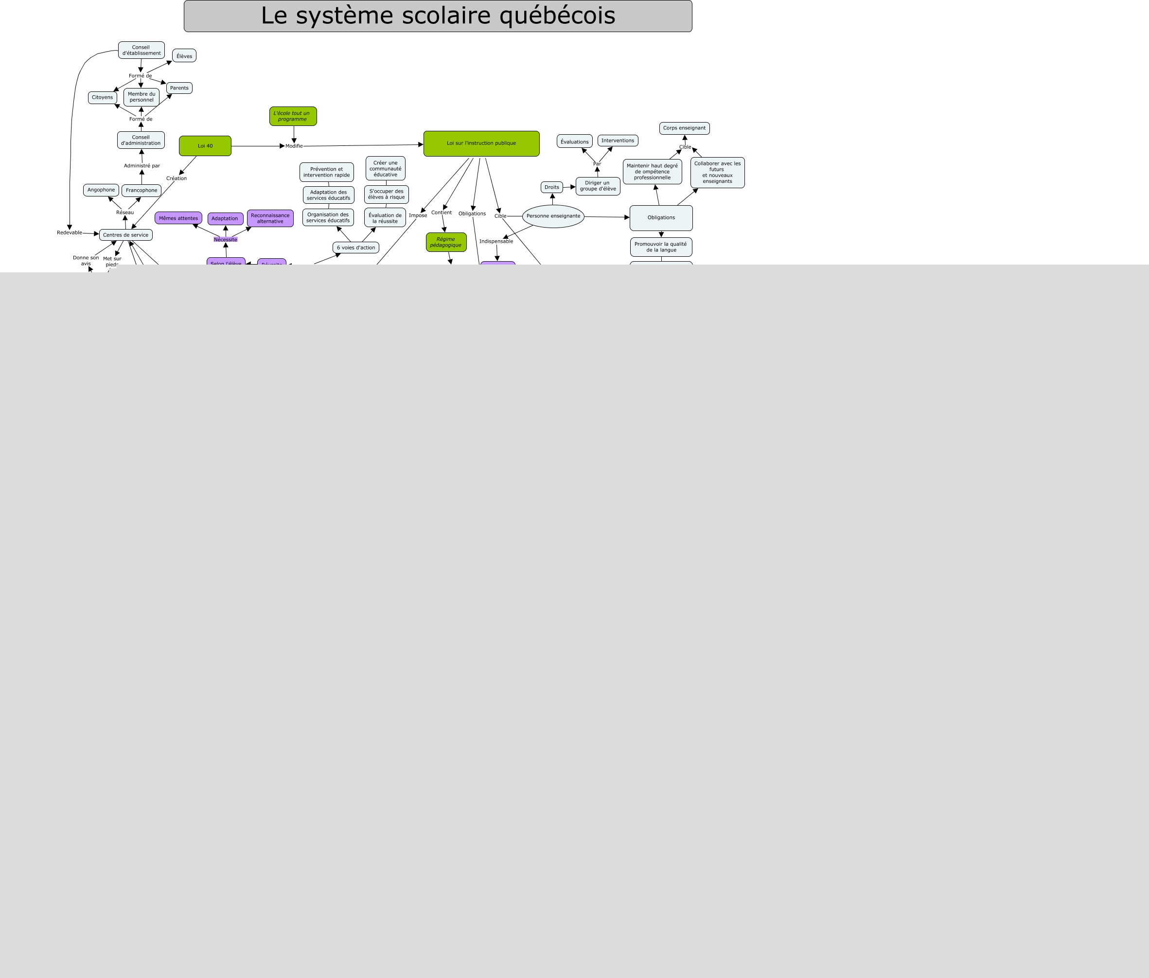 Cette carte de concepts créée avec IHMC CmapTools traite de: Évaluation_formative, Personnels de l'école Parents, d’animation spirituelle et d’engagement communautaire Entraîneurs, Mobilisation de son environement Alors Plan d'intervention PI, Mathématique science et technologie Contient Disciplines, de promotion de la participation de l’élève à la vie éducative Conseiller pédagogique, Centres de service Responsable Politique d'organisation des services éducatifs, Conseil d'établissement Formé de Élèves, d’information et d’orientation scolaires et professionnelles de psychologie, Aide Promotion et prévention, Éduction préscolaire Admissibilité 4 ans, Secondaire Organisation 1er cycle (2 ans), Secondaire Organisation 2eme cycle (3 ans), Communication Régulation, Élève Communauté, Développement personnel Langue, Développer le respect des droits de la personne Agir de manière juste et impartiale, Politique d'organisation des services éducatifs Précise Évaluations, Projet éducatif Détermine Objectifs de réussite, S'occuper des élèves à risque Évaluation de la réussite, Approche par compétences Selon des ressources Internes