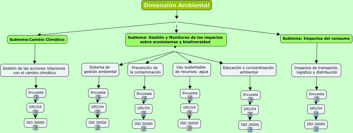 Este Cmap, tiene información relacionada con: Ambiental, Encuesta ???? GRI/G4, Subtema: Gestión y Monitoreo de los impactos sobre ecosistemas y biodiversidad Educación y concientización ambiental, Encuesta ???? GRI/G4, Dimensión Ambiental Subtema: Impactos del consumo, Subtema: Impactos del consumo ???? Impactos de transporte, logística y distribución, GRI/G4 ???? ISO 26000, GRI/G4 ???? ISO 26000, Encuesta ???? GRI/G4, Encuesta ???? GRI/G4, Educación y concientización ambiental ???? Encuesta, GRI/G4 ???? ISO 26000, Subtema:Cambio Climático ???? Gestión de las acciones relaciones con el cambio climático, GRI/G4 ???? ISO 26000, Impactos de transporte, logística y distribución ???? Encuesta, Encuesta ???? GRI/G4, Sistema de gestión ambiental ???? Encuesta, Prevención de la contaminación ???? Encuesta, Gestión de las acciones relaciones con el cambio climático ???? Encuesta, Subtema: Gestión y Monitoreo de los impactos sobre ecosistemas y biodiversidad Uso sustentable de recursos: agua, Subtema: Gestión y Monitoreo de los impactos sobre ecosistemas y biodiversidad Sistema de gestión ambiental