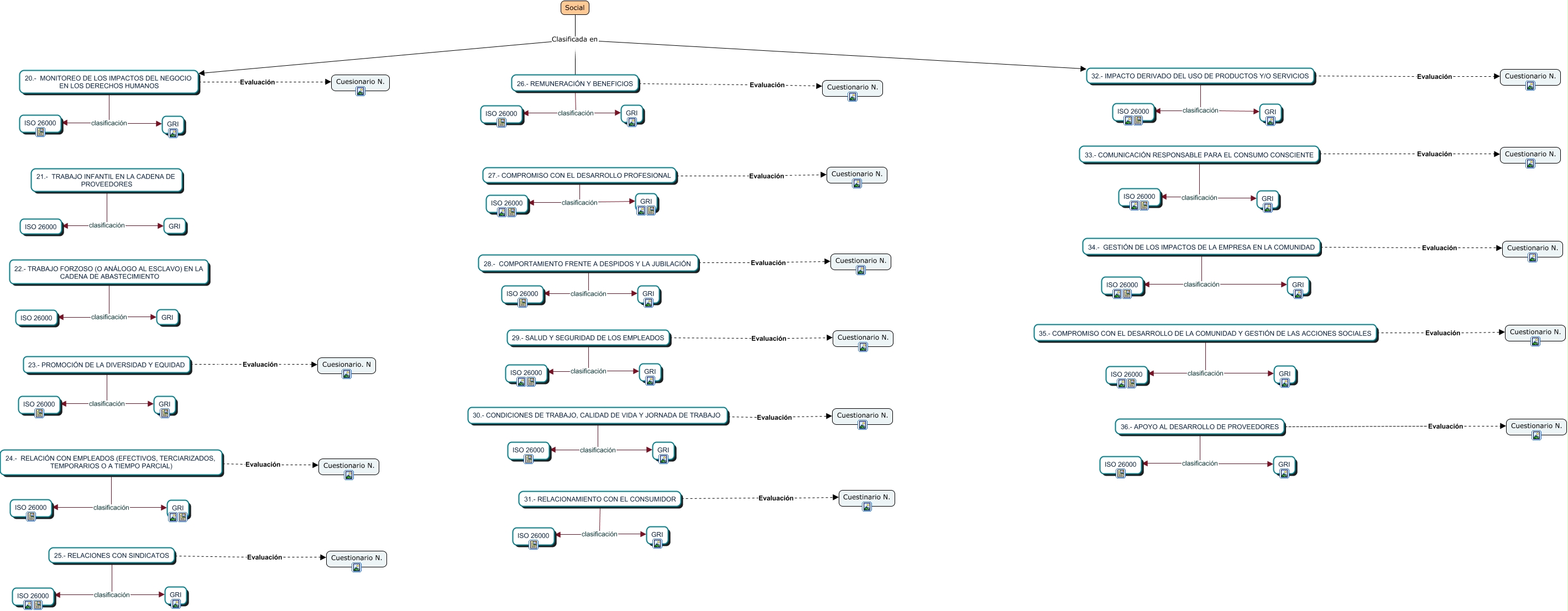 Este Cmap, tiene información relacionada con: DIMENSIÓN SOCIAL, Social Clasificada en 26.- REMUNERACIÓN Y BENEFICIOS, 20.- MONITOREO DE LOS IMPACTOS DEL NEGOCIO EN LOS DERECHOS HUMANOS clasificación ISO 26000, Social Clasificada en 28.- COMPORTAMIENTO FRENTE A DESPIDOS Y LA JUBILACIÓN, 34.- GESTIÓN DE LOS IMPACTOS DE LA EMPRESA EN LA COMUNIDAD clasificación ISO 26000, Social Clasificada en 33.- COMUNICACIÓN RESPONSABLE PARA EL CONSUMO CONSCIENTE, 24.- RELACIÓN CON EMPLEADOS (EFECTIVOS, TERCIARIZADOS, TEMPORARIOS O A TIEMPO PARCIAL) clasificación ISO 26000, 23.- PROMOCIÓN DE LA DIVERSIDAD Y EQUIDAD clasificación ISO 26000, 25.- RELACIONES CON SINDICATOS clasificación ISO 26000, Social Clasificada en 29.- SALUD Y SEGURIDAD DE LOS EMPLEADOS, 29.- SALUD Y SEGURIDAD DE LOS EMPLEADOS clasificación ISO 26000, 32.- IMPACTO DERIVADO DEL USO DE PRODUCTOS Y/O SERVICIOS clasificación GRI, Social Clasificada en 23.- PROMOCIÓN DE LA DIVERSIDAD Y EQUIDAD, 27.- COMPROMISO CON EL DESARROLLO PROFESIONAL clasificación ISO 26000, 31.- RELACIONAMIENTO CON EL CONSUMIDOR clasificación ISO 26000, 28.- COMPORTAMIENTO FRENTE A DESPIDOS Y LA JUBILACIÓN clasificación ISO 26000, 36.- APOYO AL DESARROLLO DE PROVEEDORES clasificación ISO 26000, Social Clasificada en 22.- TRABAJO FORZOSO (O ANÁLOGO AL ESCLAVO) EN LA CADENA DE ABASTECIMIENTO, 31.- RELACIONAMIENTO CON EL CONSUMIDOR Evaluación Cuestinario N., 29.- SALUD Y SEGURIDAD DE LOS EMPLEADOS Evaluación Cuestionario N., 25.- RELACIONES CON SINDICATOS clasificación GRI