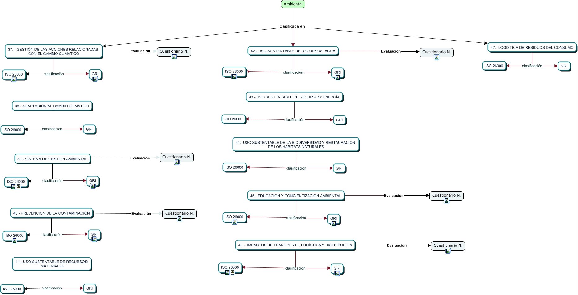Este Cmap, tiene información relacionada con: DIMENSIÓN AMBIENTAL, 40.- PREVENCION DE LA CONTAMINACIÓN Evaluación Cuestionario N., Ambiental clasificada en 41.- USO SUSTENTABLE DE RECURSOS: MATERIALES, 40.- PREVENCION DE LA CONTAMINACIÓN clasificación ISO 26000, 46.- IMPACTOS DE TRANSPORTE, LOGÍSTICA Y DISTRIBUCIÓN clasificación GRI, 44.- USO SUSTENTABLE DE LA BIODIVERSIDAD Y RESTAURACIÓN DE LOS HABITATS NATURALES clasificación ISO 26000, 39.- SISTEMA DE GESTIÓN AMBIENTAL Evaluación Cuestionario N., 38.- ADAPTACIÓN AL CAMBIO CLIMÁTICO clasificación ISO 26000, 39.- SISTEMA DE GESTIÓN AMBIENTAL clasificación GRI, 43.- USO SUSTENTABLE DE RECURSOS: ENERGÍA clasificación GRI, Ambiental clasificada en 45.- EDUCACIÓN Y CONCIENTIZACIÓN AMBIENTAL, 37.- GESTIÓN DE LAS ACCIONES RELACIONADAS CON EL CAMBIO CLIMÁTICO Evaluación Cuestionario N., Ambiental clasificada en 46.- IMPACTOS DE TRANSPORTE, LOGÍSTICA Y DISTRIBUCIÓN, Ambiental clasificada en 38.- ADAPTACIÓN AL CAMBIO CLIMÁTICO, 42.- USO SUSTENTABLE DE RECURSOS: AGUA Evaluación Cuestionario N., 45.- EDUCACIÓN Y CONCIENTIZACIÓN AMBIENTAL clasificación ISO 26000, 46.- IMPACTOS DE TRANSPORTE, LOGÍSTICA Y DISTRIBUCIÓN Evaluación Cuestionario N., 41.- USO SUSTENTABLE DE RECURSOS: MATERIALES clasificación GRI, Ambiental clasificada en 47.- LOGÍSTICA DE RESÍDUOS DEL CONSUMO, 46.- IMPACTOS DE TRANSPORTE, LOGÍSTICA Y DISTRIBUCIÓN clasificación ISO 26000, Ambiental clasificada en 43.- USO SUSTENTABLE DE RECURSOS: ENERGÍA