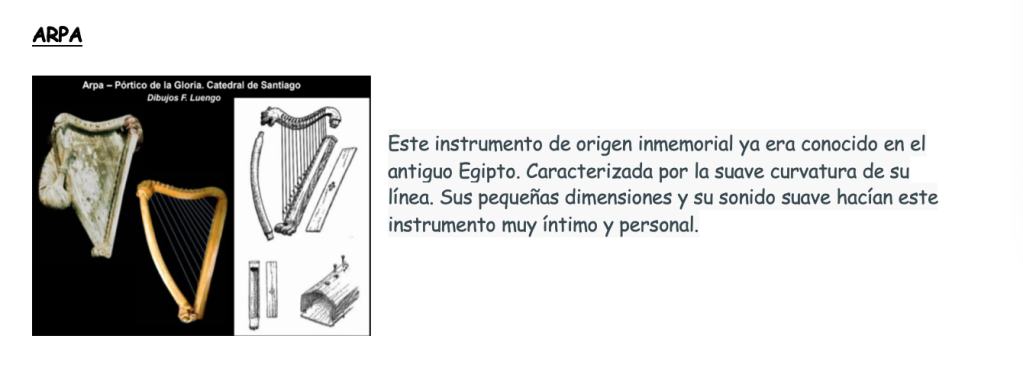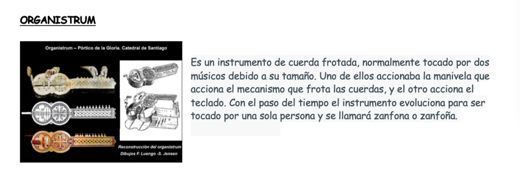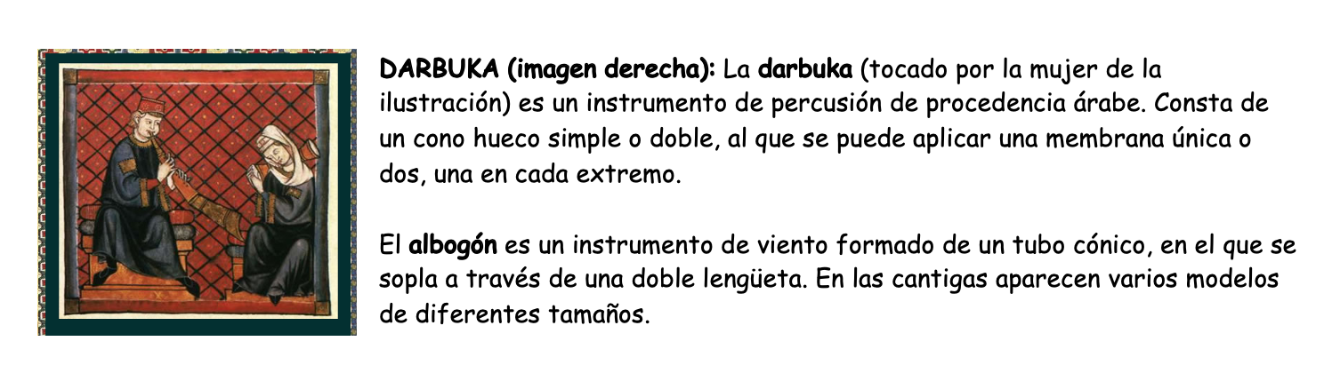 Albogues.png Albogue Video.url Añafil.png Añafil Video.url arpa.png Audios.url Carrillón diatónico.png Carrillón Martillo.png chirimía.png Chirimia Video.url Címbalos.png Cítola.png Cítola Video.url Cornamusa.png Cornamusa Video.url Cornetas.png Darbuka.png Darbuka video.url Fidula.png fidula en ocho.png Fídula en ocho video.url fídula oval.png Fídula Video.url Flautas traveseras.png instrumentos medievales.cmap instrumentos medievales en el pórtico de la gloria.pdf Laud.png Launedda.png Launedda Video.url Los instrumentos en las Cantigas de Santa María.pdf Odrecillo.png Odrecillo Video.url organistrum.png Órgano Portativo.png Órgano portativo video.url rabel.png Rabel Video.url salterio.png tamboril.png Tamboril video.url Tejoletas.png Tejoletas Video.url trompas y trompetas.png Video.url Video Arpa Medieval.url Video Laúd.url Video Salterio.url