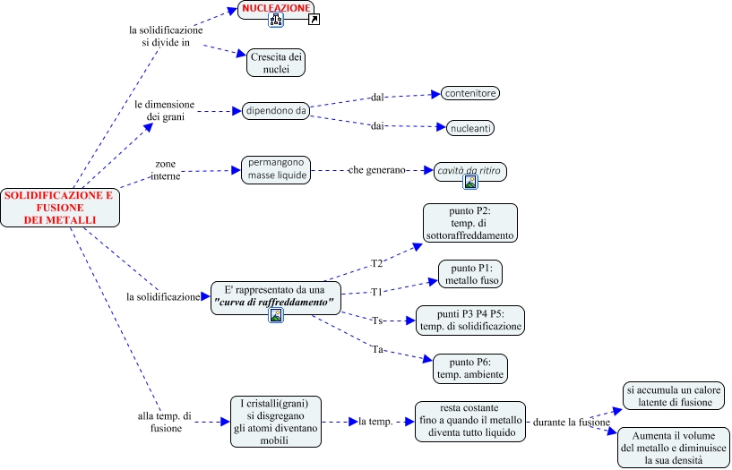 Questa Cmap, creata con IHMC CmapTools, contiene informazioni relative a: solidificazione e fusione, resta costante fino a quando il metallo diventa tutto liquido durante la fusione Aumenta il volume del metallo e diminuisce la sua densità, dipendono da dal contenitore, SOLIDIFICAZIONE E FUSIONE DEI METALLI le dimensione dei grani dipendono da, E' rappresentato da una "curva di raffreddamento" T1 punto P1: metallo fuso, SOLIDIFICAZIONE E FUSIONE DEI METALLI la solidificazione si divide in NUCLEAZIONE, E' rappresentato da una "curva di raffreddamento" Ts punti P3 P4 P5: temp. di solidificazione, I cristalli(grani) si disgregano gli atomi diventano mobili la temp. resta costante fino a quando il metallo diventa tutto liquido, SOLIDIFICAZIONE E FUSIONE DEI METALLI la solidificazione si divide in Crescita dei nuclei, E' rappresentato da una "curva di raffreddamento" Ta punto P6: temp. ambiente, dipendono da dai nucleanti, SOLIDIFICAZIONE E FUSIONE DEI METALLI alla temp. di fusione I cristalli(grani) si disgregano gli atomi diventano mobili, SOLIDIFICAZIONE E FUSIONE DEI METALLI la solidificazione E' rappresentato da una "curva di raffreddamento", E' rappresentato da una "curva di raffreddamento" T2 punto P2: temp. di sottoraffreddamento, resta costante fino a quando il metallo diventa tutto liquido durante la fusione si accumula un calore latente di fusione, SOLIDIFICAZIONE E FUSIONE DEI METALLI zone interne permangono masse liquide, permangono masse liquide che generano cavità da ritiro