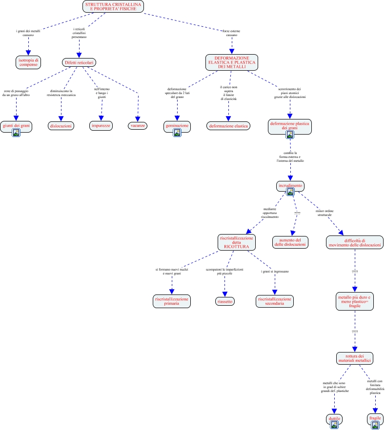 Questa Cmap, creata con IHMC CmapTools, contiene informazioni relative a: struttura cristallina, rottura dei materiali metallici metalli con limitata deformabilità plastica fragile, STRUTTURA CRISTALLINA E PROPRIETA' FISICHE i reticoli cristallini presentano Difetti reticolari, riscristallizzazione detta RICOTTURA scompaioni le imperfezioni più piccole riassetto, DEFORMAZIONE ELASTICA E PLASTICA DEI METALLI deformazione speculare da 2 lati del grano geminazione, incrudimento ???? aumento del delle dislocazioni, incrudimento minor ordine strutturale difficoltà di movimento delle dislocazioni, difficoltà di movimento delle dislocazioni ???? metallo più duro e meno plastico= fragile, DEFORMAZIONE ELASTICA E PLASTICA DEI METALLI scrorrimento dei piani atomici grazie alle dislocazioni deformazione plastica dei grani, incrudimento mediante opportuno riscalmaento riscristallizzazione detta RICOTTURA, Difetti reticolari vacanze, Difetti reticolari diminuiscono la resistenza meccanica dislocazioni, deformazione plastica dei grani cambia la forma esterna e l'interna del metallo incrudimento, riscristallizzazione detta RICOTTURA i grani si ingrossano riscristallizzazione secondaria, metallo più duro e meno plastico= fragile ???? rottura dei materiali metallici, rottura dei materiali metallici metalli che sono in grad di subire grandi def. plastiche duttile, Difetti reticolari zone di passaggio da un grano all'altro giunti dei grani, DEFORMAZIONE ELASTICA E PLASTICA DEI METALLI il carico non supera il limite di elasticità deformazione elastica, STRUTTURA CRISTALLINA E PROPRIETA' FISICHE forze esterne causano DEFORMAZIONE ELASTICA E PLASTICA DEI METALLI, STRUTTURA CRISTALLINA E PROPRIETA' FISICHE i grani dei metalli causano isotropia di compenso, Difetti reticolari nell'interno e lungo i giunti impurezze