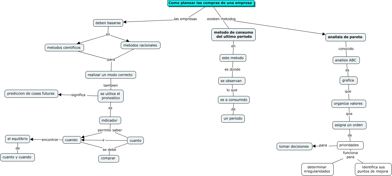Este Cmap, tiene información relacionada con: Como planear las compras de una empresa, metodos racionales para realizar un modo correcto, deben basarse en metodos racionales, grafica que organiza valores, organiza valores que asigna un orden, prioridades funciona para determinar irregularidades, Como planear las compras de una empresa existen metodos metodo de consumo del ultimo periodo, asigna un orden de prioridades, metodos cientificos para realizar un modo correcto, Como planear las compras de una empresa las empresas deben basarse, se utiliza el pronostico es indicador, cuanto y cuando, analisis ABC es grafica, Como planear las compras de una empresa existen metodos analisis de pareto, cuanto se debe comprar, se utiliza el pronostico significa prediccion de cosas futuras, cuando encontrar el equilibrio, prioridades funciona para identifica sus puntos de mejora, deben basarse en metodos cientificos, indicador permite saber cuanto, se a consumido de un periodo