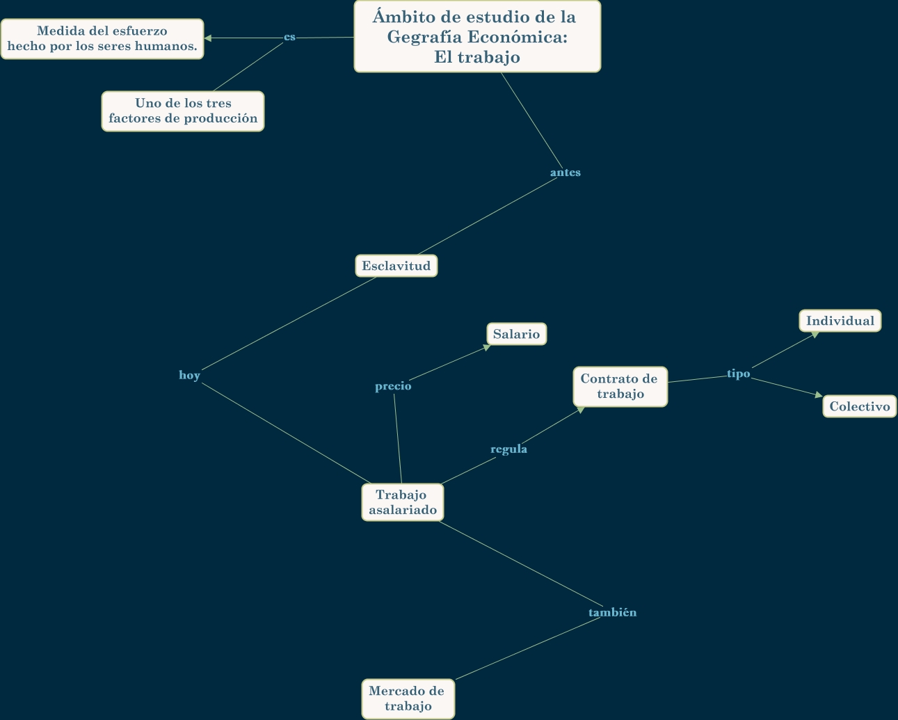 This Concept Map, created with IHMC CmapTools, has information related to: UMAPA UFG GRUPO 15 ESTE SI, Esclavitud hoy Trabajo asalariado, Ámbito de estudio de la Gegrafía Económica: El trabajo es Medida del esfuerzo hecho por los seres humanos., Trabajo asalariado regula Contrato de trabajo, Ámbito de estudio de la Gegrafía Económica: El trabajo es Uno de los tres factores de producción, Trabajo asalariado precio Salario, Contrato de trabajo tipo Colectivo, Contrato de trabajo tipo Individual, Ámbito de estudio de la Gegrafía Económica: El trabajo antes Esclavitud, Trabajo asalariado también Mercado de trabajo