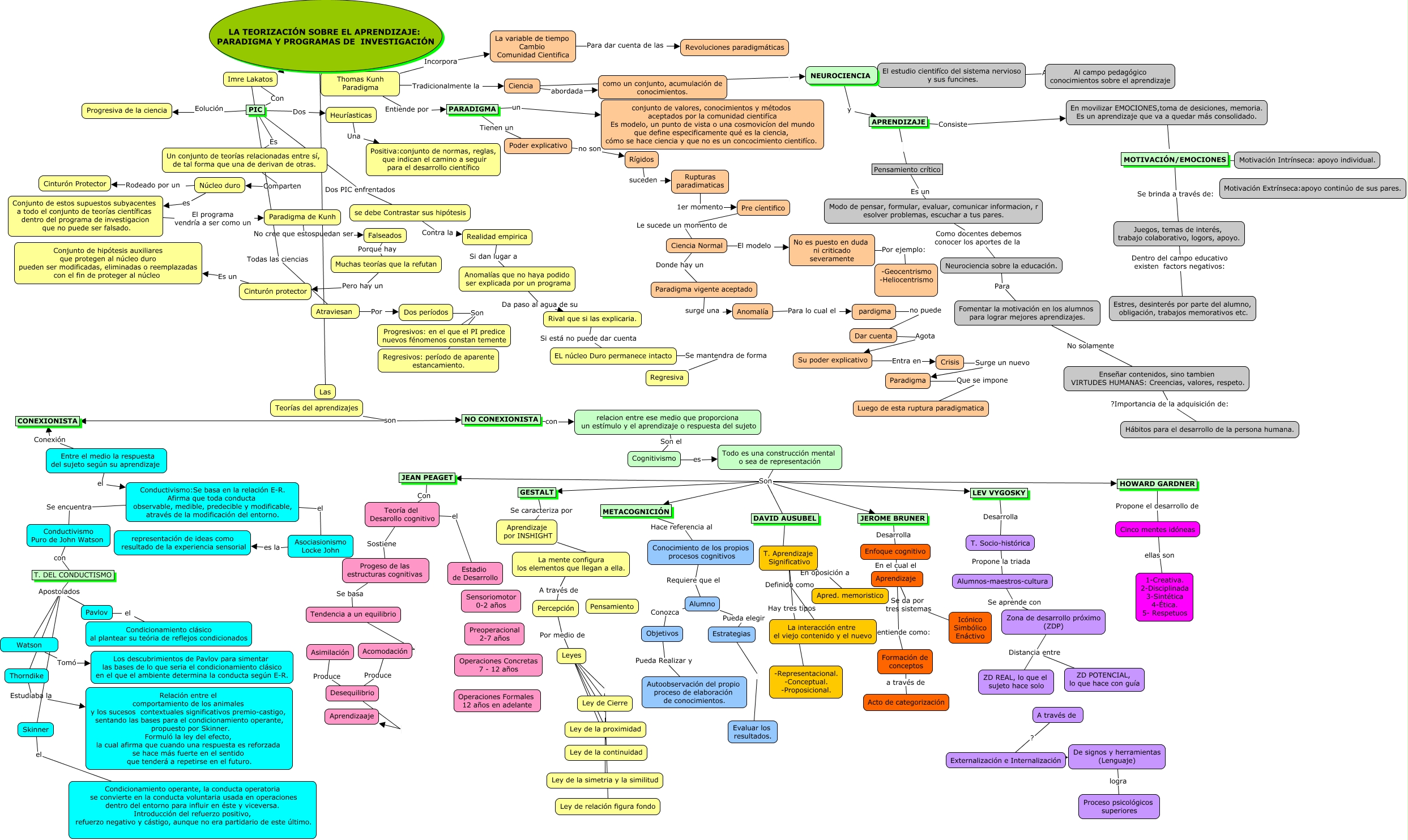 Este Cmap, tiene información relacionada con: final teoria, Todo es una construcción mental o sea de representación Son JEAN PEAGET, NO CONEXIONISTA con relacion entre ese medio que proporciona un estímulo y el aprendizaje o respuesta del sujeto, PARADIGMA Tienen un Poder explicativo, relacion entre ese medio que proporciona un estímulo y el aprendizaje o respuesta del sujeto Son el Cognitivismo, Todo es una construcción mental o sea de representación Son HOWARD GARDNER, T. Socio-histórica Propone la triada Alumnos-maestros-cultura, De signos y herramientas (Lenguaje) logra Proceso psicológicos superiores, Neurociencia sobre la educación. Para Fomentar la motivación en los alumnos para lograr mejores aprendizajes., se debe Contrastar sus hipótesis Contra la Realidad empirica, Leyes Ley de la continuidad, T. DEL CONDUCTISMO Apostolados Skinner, APRENDIZAJE Consiste En movilizar EMOCIONES,toma de desiciones, memoria. Es un aprendizaje que va a quedar más consolidado., Ciencia abordada como un conjunto, acumulación de conocimientos., Todo es una construcción mental o sea de representación Son DAVID AUSUBEL, Todo es una construcción mental o sea de representación Son METACOGNICIÓN, Thorndike Estudiaba la Relación entre el comportamiento de los animales y los sucesos contextuales significativos premio-castigo, sentando las bases para el condicionamiento operante, propuesto por Skinner. Formuló la ley del efecto, la cual afirma que cuando una respuesta es reforzada se hace más fuerte en el sentido que tenderá a repetirse en el futuro., Paradigma vigente aceptado surge una Anomalía, Heuríasticas Una Positiva:conjunto de normas, reglas, que indican el camino a seguir para el desarrollo científico, Muchas teorías que la refutan Pero hay un Cinturón protector, Thomas Kunh Paradigma Incorpora La variable de tiempo Cambio Comunidad Cientifica
