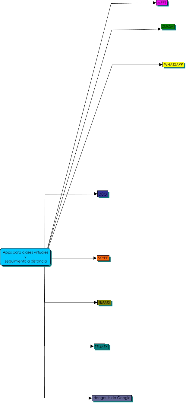 Este Cmap, tiene información relacionada con: ARBOL, Apps para clases virtuales y seguimiento a distancia ???? Hangouts de Google, Apps para clases virtuales y seguimiento a distancia ???? SKYPE, Apps para clases virtuales y seguimiento a distancia ???? ZOOM, Apps para clases virtuales y seguimiento a distancia ???? DÚO, Apps para clases virtuales y seguimiento a distancia ???? WHATSAPP, Apps para clases virtuales y seguimiento a distancia ???? MEET, Apps para clases virtuales y seguimiento a distancia ???? ????, Apps para clases virtuales y seguimiento a distancia ???? TEAMS