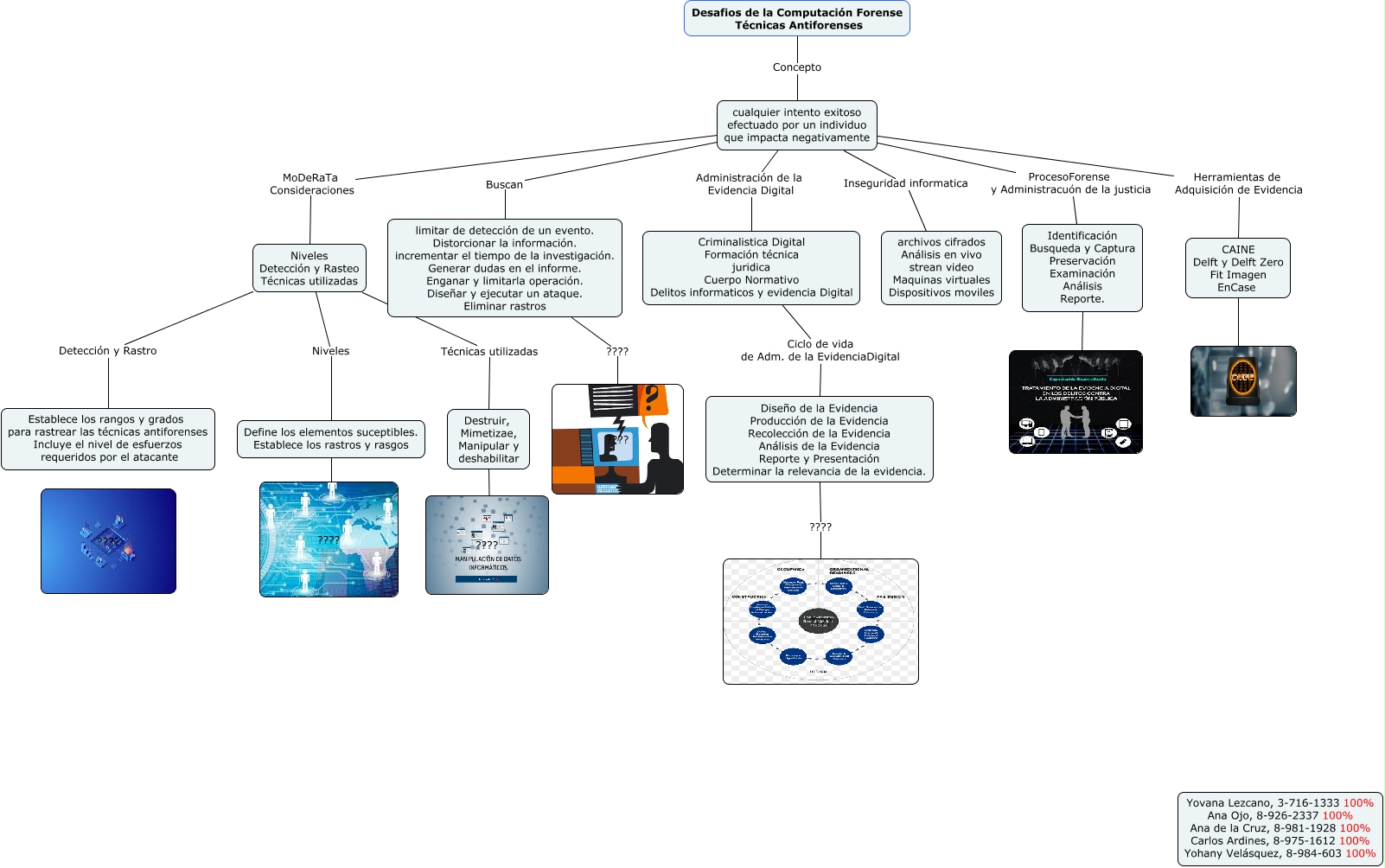 Este Cmap, tiene información relacionada con: tecnicas, CAINE Delft y Delft Zero Fit Imagen EnCase ???? ????, Niveles Detección y Rasteo Técnicas utilizadas Detección y Rastro Establece los rangos y grados para rastrear las técnicas antiforenses Incluye el nivel de esfuerzos requeridos por el atacante, Define los elementos suceptibles. Establece los rastros y rasgos ????, Desafios de la Computación Forense Técnicas Antiforenses Concepto cualquier intento exitoso efectuado por un individuo que impacta negativamente, Niveles Detección y Rasteo Técnicas utilizadas Niveles Define los elementos suceptibles. Establece los rastros y rasgos, cualquier intento exitoso efectuado por un individuo que impacta negativamente MoDeRaTa Consideraciones Niveles Detección y Rasteo Técnicas utilizadas, cualquier intento exitoso efectuado por un individuo que impacta negativamente ProcesoForense y Administracuón de la justicia Identificación Busqueda y Captura Preservación Examinación Análisis Reporte., Identificación Busqueda y Captura Preservación Examinación Análisis Reporte. ???? ????, cualquier intento exitoso efectuado por un individuo que impacta negativamente Inseguridad informatica archivos cifrados Análisis en vivo strean video Maquinas virtuales Dispositivos moviles, cualquier intento exitoso efectuado por un individuo que impacta negativamente Herramientas de Adquisición de Evidencia CAINE Delft y Delft Zero Fit Imagen EnCase, cualquier intento exitoso efectuado por un individuo que impacta negativamente Administración de la Evidencia Digital Criminalistica Digital Formación técnica juridica Cuerpo Normativo Delitos informaticos y evidencia Digital, Destruir, Mimetizae, Manipular y deshabilitar ???? ????, cualquier intento exitoso efectuado por un individuo que impacta negativamente Buscan limitar de detección de un evento. Distorcionar la información. incrementar el tiempo de la investigación. Generar dudas en el informe. Enganar y limitarla operación. Diseñar y ejecutar un ataque. Eliminar rastros, Niveles Detección y Rasteo Técnicas utilizadas Técnicas utilizadas Destruir, Mimetizae, Manipular y deshabilitar, Criminalistica Digital Formación técnica juridica Cuerpo Normativo Delitos informaticos y evidencia Digital Ciclo de vida de Adm. de la EvidenciaDigital Diseño de la Evidencia Producción de la Evidencia Recolección de la Evidencia Análisis de la Evidencia Reporte y Presentación Determinar la relevancia de la evidencia., limitar de detección de un evento. Distorcionar la información. incrementar el tiempo de la investigación. Generar dudas en el informe. Enganar y limitarla operación. Diseñar y ejecutar un ataque. Eliminar rastros ???? ????, Diseño de la Evidencia Producción de la Evidencia Recolección de la Evidencia Análisis de la Evidencia Reporte y Presentación Determinar la relevancia de la evidencia. ???? ????