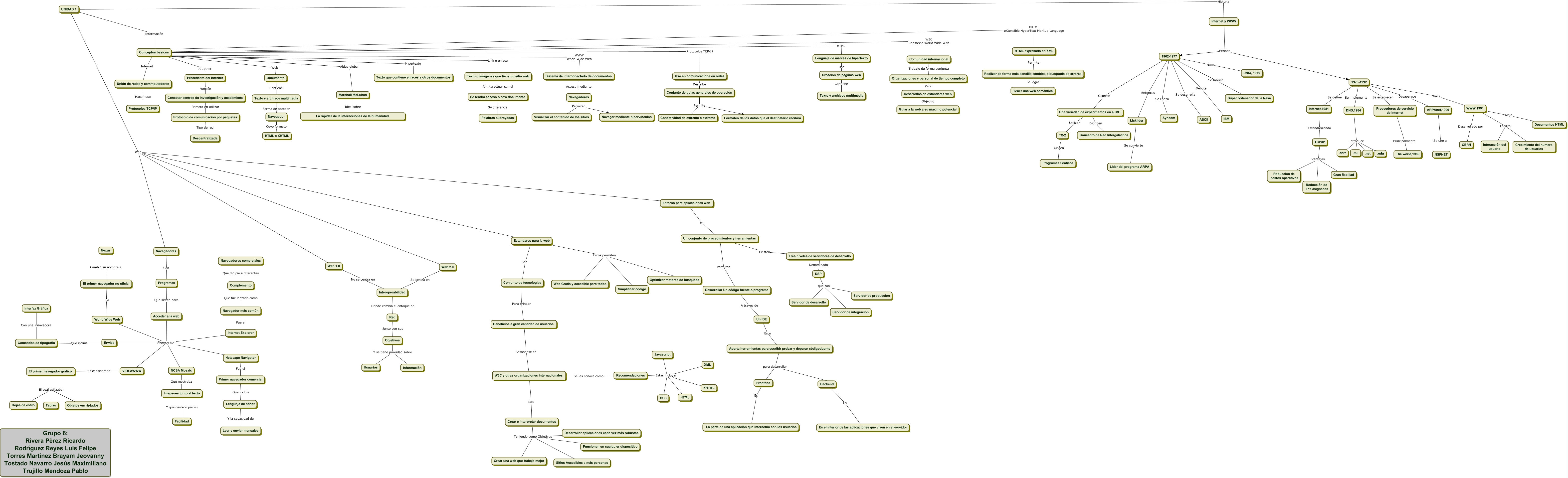Este Cmap, tiene información relacionada con: Mapa conceptual Unidad 1, Web 1.0 Web Estandares para la web, Acceder a la web Algunos son Netscape Navigator, Protocolo de comunicación por paquetes Tipo de red Descentralizada, Backend Es Es el interior de las aplicaciones que viven en el servidor, TCP/IP Ventajas Gran fiabiliad, Aporta herramientas para escribir probar y depurar códigoduente para desarrollar Frontend, Proveedores de servicio de internet Principalmente The world,1989, ARPAnet,1990 Se une a NSFNET, Licklider Se convierte Lider del programa ARPA, Estandares para la web Son Conjunto de tecnologias, 1962-1977 Ocurren Una variedad de experimentos en el MIT, Red Junto con sus Objetivos, Conjunto de tecnologias Para brindar Beneficios a gran cantidad de usuarios, Conceptos básicos HTML Lenguaje de marcas de hipertexto, 1962-1977 Se Lanza Syncom, Erwise Que incluía Comandos de tipografía, Una variedad de experimentos en el MIT Escriben Concepto de Red Intergalactica, Aporta herramientas para escribir probar y depurar códigoduente para desarrollar Backend, Entorno para aplicaciones web Es Un conjunto de procedimientos y herramientas, Objetivos Y se tiene prioridad sobre Usuarios