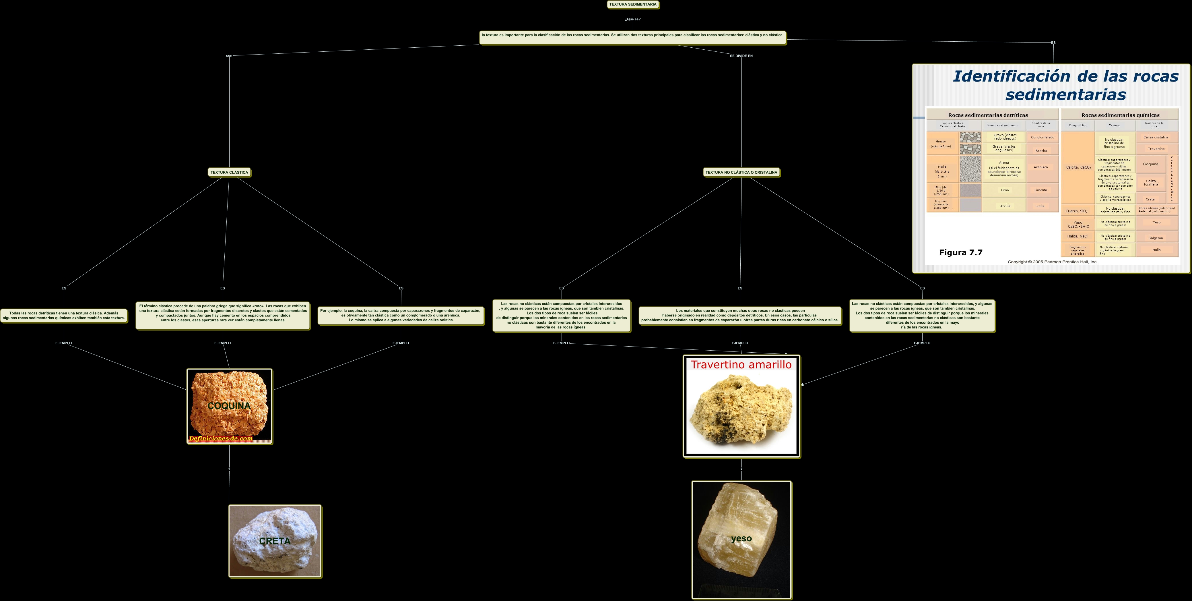 Este Cmap, tiene información relacionada con: texturas sedimentarias, Las rocas no clásticas están compuestas por cristales intercrecidos , y algunas se parecen a las rocas ígneas, que son también cristalinas. Los dos tipos de roca suelen ser fáciles de distinguir porque los minerales contenidos en las rocas sedimentarias no clásticas son bastante diferentes de los encontrados en la mayoría de las rocas ígneas. EJEMPLO, TEXTURA SEDIMENTARIA ¿Que es? la textura es importante para la clasificación de las rocas sedimentarias. Se utilizan dos texturas principales para clasificar las rocas sedimentarias: clástica y no clástica., TEXTURA NO CLÁSTICA O CRISTALINA ES Los materiales que constituyen muchas otras rocas no clásticas pueden haberse originado en realidad como depósitos detríticos. En esos casos, las partículas probablemente consistían en fragmentos de caparazón u otras partes duras ricas en carbonato cálcico o sílice., la textura es importante para la clasificación de las rocas sedimentarias. Se utilizan dos texturas principales para clasificar las rocas sedimentarias: clástica y no clástica. son TEXTURA CLÁSTICA, Y yeso, TEXTURA NO CLÁSTICA O CRISTALINA ES Las rocas no clásticas están compuestas por cristales intercrecidos , y algunas se parecen a las rocas ígneas, que son también cristalinas. Los dos tipos de roca suelen ser fáciles de distinguir porque los minerales contenidos en las rocas sedimentarias no clásticas son bastante diferentes de los encontrados en la mayoría de las rocas ígneas., la textura es importante para la clasificación de las rocas sedimentarias. Se utilizan dos texturas principales para clasificar las rocas sedimentarias: clástica y no clástica. ES, la textura es importante para la clasificación de las rocas sedimentarias. Se utilizan dos texturas principales para clasificar las rocas sedimentarias: clástica y no clástica. SE DIVIDE EN TEXTURA NO CLÁSTICA O CRISTALINA, TEXTURA CLÁSTICA ES El término clástica procede de una palabra griega que significa «roto». Las rocas que exhiben una textura clástica están formadas por fragmentos discretos y clastos que están cementados y compactados juntos. Aunque hay cemento en los espacios comprendidos entre los clastos, esas aperturas rara vez están completamente llenas., Las rocas no clásticas están compuestas por cristales intercrecidos, y algunas se parecen a las rocas ígneas, que son también cristalinas. Los dos tipos de roca suelen ser fáciles de distinguir porque los minerales contenidos en las rocas sedimentarias no clásticas son bastante diferentes de los encontrados en la mayo ría de las rocas ígneas. EJEMPLO, COQUINA Y CRETA, TEXTURA NO CLÁSTICA O CRISTALINA ES Las rocas no clásticas están compuestas por cristales intercrecidos, y algunas se parecen a las rocas ígneas, que son también cristalinas. Los dos tipos de roca suelen ser fáciles de distinguir porque los minerales contenidos en las rocas sedimentarias no clásticas son bastante diferentes de los encontrados en la mayo ría de las rocas ígneas., El término clástica procede de una palabra griega que significa «roto». Las rocas que exhiben una textura clástica están formadas por fragmentos discretos y clastos que están cementados y compactados juntos. Aunque hay cemento en los espacios comprendidos entre los clastos, esas aperturas rara vez están completamente llenas. EJEMPLO COQUINA, TEXTURA CLÁSTICA ES Todas las rocas detríticas tienen una textura clásica. Además algunas rocas sedimentarias químicas exhiben también esta textura., TEXTURA CLÁSTICA ES Por ejemplo, la coquina, la caliza compuesta por caparazones y fragmentos de caparazón, es obviamente tan clástica como un conglomerado o una arenisca. Lo mismo se aplica a algunas variedades de caliza oolítica., Por ejemplo, la coquina, la caliza compuesta por caparazones y fragmentos de caparazón, es obviamente tan clástica como un conglomerado o una arenisca. Lo mismo se aplica a algunas variedades de caliza oolítica. EJEMPLO COQUINA, Todas las rocas detríticas tienen una textura clásica. Además algunas rocas sedimentarias químicas exhiben también esta textura. EJEMPLO COQUINA, Los materiales que constituyen muchas otras rocas no clásticas pueden haberse originado en realidad como depósitos detríticos. En esos casos, las partículas probablemente consistían en fragmentos de caparazón u otras partes duras ricas en carbonato cálcico o sílice. EJEMPLO