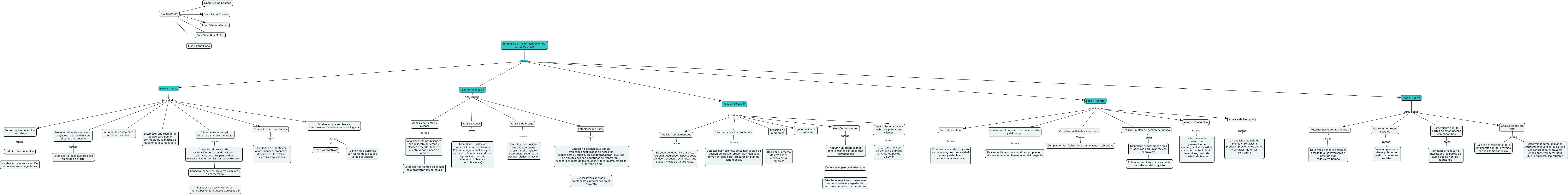 Este Cmap, tiene información relacionada con: EDT_Proyecto1, Realizado por ???? Sara Valentina Muñoz, Empresa de manunfacturación de partes de avion Fases Fase 5: Cierre, Analisis financiero final Tareas Determinar como se planea recuperar la inversion inicial una vez consolidado el proyecto en los años venideros para que la empresa sea rentable, Empresa de manunfacturación de partes de avion Fases Fase 2: Planeación, Realizado por ???? Juan Esteban Gomez, Comercializacion de partes de avion hechas con nanotubos Tareas Empezar a vendear a interesados las partes de avion que se han ido fabricando, Fase 3: Ejecución Actividades Analisis Complementario, Realizar un plan de gestion del riesgo Tareas Identificar riesgos financieros y logisticos para avanzar con el proyecto, Fase 1: Inicio Actividades Conformacion de equipo de trabajo, Control de calidad tareas En el transcurso del proyecto se debe asegurar una calidad optima y estable con respecto a la idea incial, Fase 4: Control Actividades Analisis Economico, Fase 5: Cierre Actividades Marketing en redes sociales, Fase 2: Planeación Actividades Analisis de Riesgo, Analisis financiero final Tareas Calcular el costo total de la impleemtación del proyecto con la estimación inicial, Estimaciones conceptuales tareas Se deben de identificar oportunidades, amenazas, debilidades, fortalezas y posibles soluciones, Fase 1: Inicio Actividades Proponer ideas de negocio o proyectos relacionadas con el campo respectivo, Identificar riesgos financieros y logisticos para avanzar con el proyecto ???? Aplicar correcciones para evitar la cancelación del proyecto, Consultar el proceso de fabricación de partes de aviones con nanoubos, que personal se necesita, caules son los costos, entre otros ???? Consultar si existen proyectos similares en el mercado, Analisis Complementario tareas Se debe de identificar, aspecto regional geografico, aspecto socio politico y aspectos ecnomicos que puedan involucrar al proyecto., Realizado por ???? Luis Esteba Llano