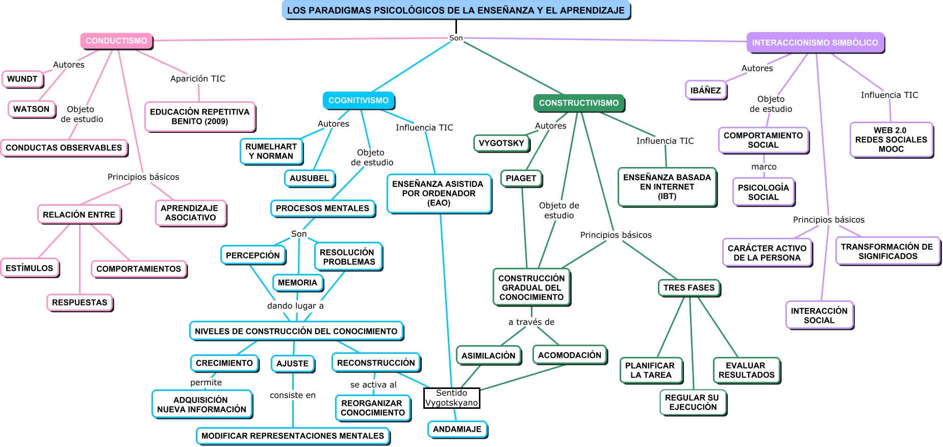 Este Cmap, tiene información relacionada con: Paradigmas Psicológicos de la E-A, INTERACCIONISMO SIMBÓLICO Objeto de estudio COMPORTAMIENTO SOCIAL, LOS PARADIGMAS PSICOLÓGICOS DE LA ENSEÑANZA Y EL APRENDIZAJE Son INTERACCIONISMO SIMBÓLICO, CONDUCTISMO Principios básicos RELACIÓN ENTRE, COGNITIVISMO Influencia TIC ENSEÑANZA ASISTIDA POR ORDENADOR (EAO), NIVELES DE CONSTRUCCIÓN DEL CONOCIMIENTO ???? RESOLUCIÓN PROBLEMAS, COGNITIVISMO Autores AUSUBEL, CONDUCTISMO Principios básicos APRENDIZAJE ASOCIATIVO, PERCEPCIÓN ???? NIVELES DE CONSTRUCCIÓN DEL CONOCIMIENTO, MEMORIA dando lugar a NIVELES DE CONSTRUCCIÓN DEL CONOCIMIENTO, LOS PARADIGMAS PSICOLÓGICOS DE LA ENSEÑANZA Y EL APRENDIZAJE Son CONSTRUCTIVISMO, RELACIÓN ENTRE ???? ESTÍMULOS, RECONSTRUCCIÓN Sentido Vygotskyano ENSEÑANZA ASISTIDA POR ORDENADOR (EAO), INTERACCIONISMO SIMBÓLICO Principios básicos INTERACCIÓN SOCIAL, COMPORTAMIENTO SOCIAL marco PSICOLOGÍA SOCIAL, CONSTRUCCIÓN GRADUAL DEL CONOCIMIENTO a través de ACOMODACIÓN, NIVELES DE CONSTRUCCIÓN DEL CONOCIMIENTO ???? CRECIMIENTO, PERCEPCIÓN Son MEMORIA, TRES FASES ???? PLANIFICAR LA TAREA, PERCEPCIÓN Son PROCESOS MENTALES, CONSTRUCTIVISMO Principios básicos TRES FASES