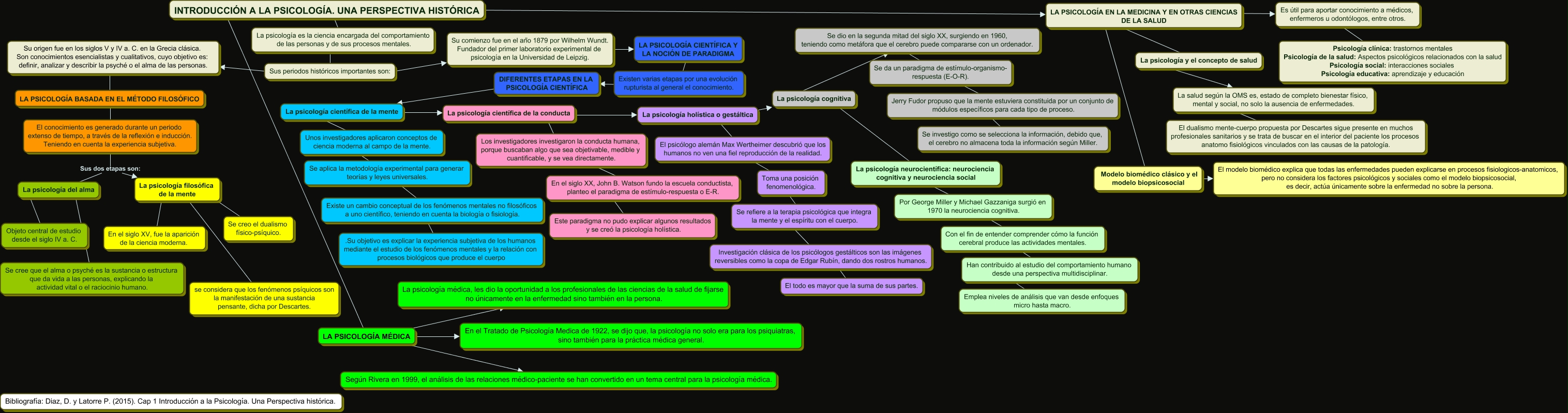Este Cmap, tiene información relacionada con: FINAL DEL MAPA, Unos investigadores aplicaron conceptos de ciencia moderna al campo de la mente. ???? Se aplica la metodología experimental para generar teorías y leyes universales., Es útil para aportar conocimiento a médicos, enfermeros u odontólogos, entre otros. ???? Psicología clínica: trastornos mentales Psicología de la salud: Aspectos psicológicos relacionados con la salud Psicología social: interacciones sociales Psicología educativa: aprendizaje y educación, Investigación clásica de los psicólogos gestálticos son las imágenes reversibles como la copa de Edgar Rubín, dando dos rostros humanos. ???? El todo es mayor que la suma de sus partes., La psicología es la ciencia encargada del comportamiento de las personas y de sus procesos mentales. ???? Sus periodos históricos importantes son:, INTRODUCCIÓN A LA PSICOLOGÍA. UNA PERSPECTIVA HISTÓRICA ???? La psicología es la ciencia encargada del comportamiento de las personas y de sus procesos mentales., La psicología holística o gestáltica ???? La psicología cognitiva, La salud según la OMS es, estado de completo bienestar físico, mental y social, no solo la ausencia de enfermedades. ???? El dualismo mente-cuerpo propuesta por Descartes sigue presente en muchos profesionales sanitarios y se trata de buscar en el interior del paciente los procesos anatomo fisiológicos vinculados con las causas de la patología., Con el fin de entender comprender cómo la función cerebral produce las actividades mentales. ???? Han contribuido al estudio del comportamiento humano desde una perspectiva multidisciplinar., La psicología cognitiva ???? Se dio en la segunda mitad del siglo XX, surgiendo en 1960, teniendo como metáfora que el cerebro puede compararse con un ordenador., LA PSICOLOGÍA EN LA MEDICINA Y EN OTRAS CIENCIAS DE LA SALUD ???? Es útil para aportar conocimiento a médicos, enfermeros u odontólogos, entre otros., El conocimiento es generado durante un periodo extenso de tiempo, a través de la reflexión e inducción. Teniendo en cuenta la experiencia subjetiva. Sus dos etapas son: La psicología filosófica de la mente, La psicología filosófica de la mente ???? Se creo el dualismo físico-psíquico., La psicología filosófica de la mente ???? se considera que los fenómenos psíquicos son la manifestación de una sustancia pensante, dicha por Descartes., La psicología científica de la mente ???? La psicología científica de la conducta, LA PSICOLOGÍA MÉDICA ???? En el Tratado de Psicología Medica de 1922, se dijo que, la psicología no solo era para los psiquiatras, sino también para la práctica médica general., Los investigadores investigaron la conducta humana, porque buscaban algo que sea objetivable, medible y cuantificable, y se vea directamente. ???? En el siglo XX, John B. Watson fundo la escuela conductista, planteo el paradigma de estímulo-respuesta o E-R., Existe un cambio conceptual de los fenómenos mentales no filosóficos a uno científico, teniendo en cuenta la biología o fisiología. ???? .Su objetivo es explicar la experiencia subjetiva de los humanos mediante el estudio de los fenómenos mentales y la relación con procesos biológicos que produce el cuerpo, LA PSICOLOGÍA EN LA MEDICINA Y EN OTRAS CIENCIAS DE LA SALUD ???? La psicología y el concepto de salud, Su origen fue en los siglos V y IV a. C. en la Grecia clásica. Son conocimientos esencialistas y cualitativos, cuyo objetivo es: definir, analizar y describir la psyché o el alma de las personas. ???? LA PSICOLOGÍA BASADA EN EL MÉTODO FILOSÓFICO, Jerry Fudor propuso que la mente estuviera constituida por un conjunto de módulos específicos para cada tipo de proceso. ???? Se investigo como se selecciona la información, debido que, el cerebro no almacena toda la información según Miller.