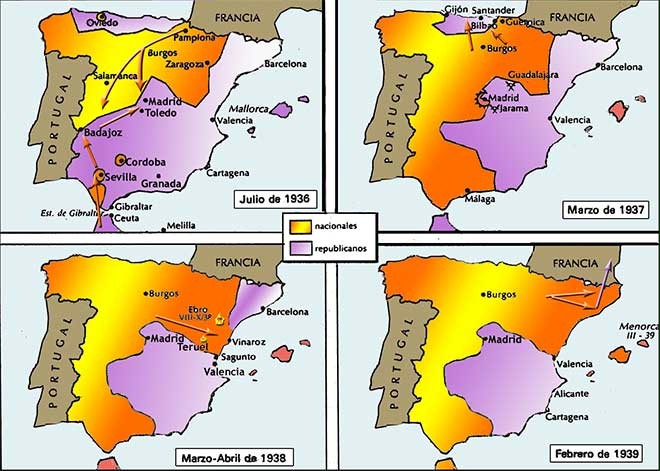 Bandera Franquista.jpg Bandera Repúblicana.jpg Fases de la Guerra.jpg Franco.jpg gobiernos republicanos durante la Guerra.jpg La Guerra Civil.cmap Largo Caballero.jpg