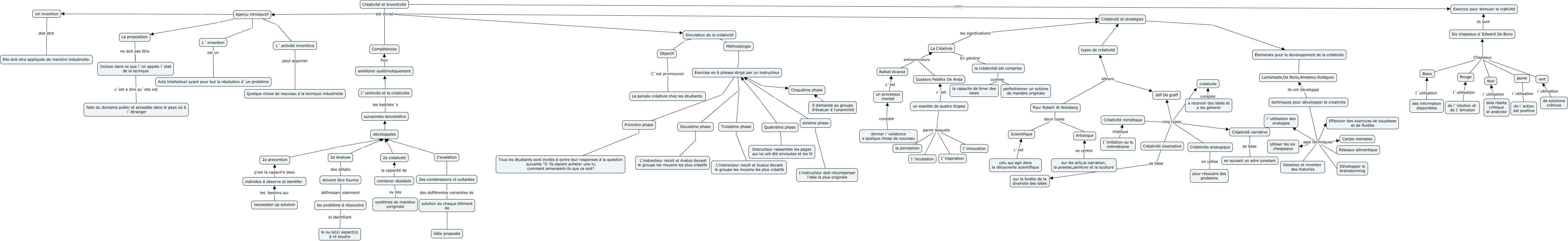 Este Cmap, tiene información relacionada con: trabajo frances2, donner i´existence a quelque chose de nouveau consiste un processus mental, combiner desideés la capacité de 2a créativité, solution de chaque élément de . iídée proposée, individus á observe et identifer p'est la capacit'e dess 2a precention, Aperçu introductif . L´ activité inventtive, I´ventivite et la créativitie les habilete´s suivanntes doiventétre, 2a Analyse . développées, Créativité mimétique cinq types Créativitie analogique, types de créativité . Créativité et stratégies, Créativité et stratégies . Élemensts pour le developpment de la créativite, Créativité et Inventivité est divisé Créativité et stratégies, combiner desideés oy des systémes de maniéve yoriginale, jaune Chapeaux Six chapeaux d´Edward De Bono, des information disponibles I´utilisation Bianc, a recevoir des ideés et a les génerer consiste créativite, un esanble de quatre étapes parmi lesquels I´incubation, sur les arts,la narration, la poseise,peinture et la sculture se centre Artistique, techniques pour développer la creativite sept techniques Développer le brainstorming, Créativité et Inventivité ???? Exercice pour stimuler le crátivité, necessiten up solution les besoins qui individus á observe et identifer