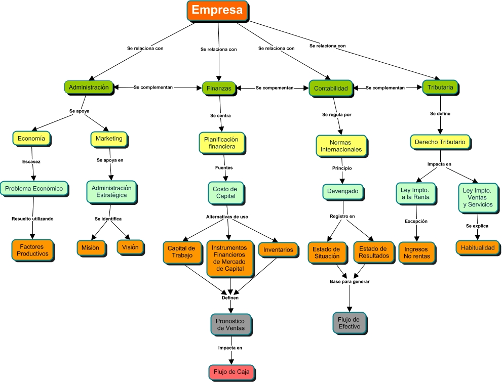 Este Cmap, tiene información relacionada con: Mapa_Conceptual_Juan_Vega, Planificación financiera Fuentes Costo de Capital, Finanzas Se centra Planificación financiera, Devengado Registro en Estado de Resultados, Administración Se apoya Marketing, Administración Estratégica Se identifica Visión, Ley Impto. Ventas y Servicios Se explica Habitualidad, Contabilidad Se regula por Normas Internacionales, Derecho Tributario Impacta en Ley Impto. Ventas y Servicios, Estado de Resultados Base para generar Flujo de Efectivo, Problema Económico Resuelto utilizando Factores Productivos, Empresa Se relaciona con Tributaria, Costo de Capital Alternativas de uso Inventarios, Administración Se apoya Economía, Devengado Registro en Estado de Situación, Empresa Se relaciona con Administración, Empresa Se relaciona con Finanzas, Costo de Capital Alternativas de uso Instrumentos Financieros de Mercado de Capital, Tributaria Se define Derecho Tributario, Capital de Trabajo Definen Pronostico de Ventas, Administración Estratégica Se identifica Misión