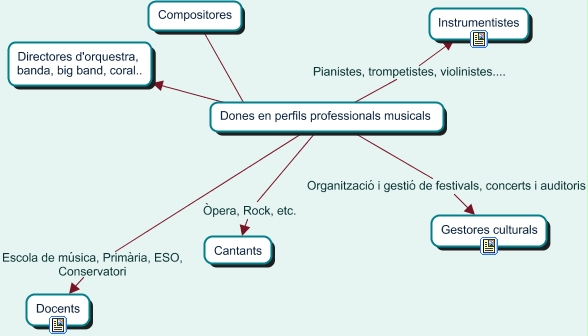 Este Cmap, tiene información relacionada con: perfils dones, Dones en perfils professionals musicals Escola de música, Primària, ESO, Conservatori Docents, Compositores ???? Directores d'orquestra, banda, big band, coral.., Dones en perfils professionals musicals Òpera, Rock, etc. Cantants, Dones en perfils professionals musicals Organització i gestió de festivals, concerts i auditoris Gestores culturals, Dones en perfils professionals musicals Pianistes, trompetistes, violinistes.... Instrumentistes