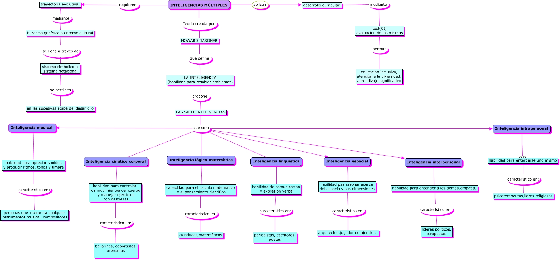 Este Cmap, tiene información relacionada con: autoformacion IPLER, LAS SIETE INTELIGENCIAS que son: Inteligencia lògico-matemàtica, LAS SIETE INTELIGENCIAS que son: Inteligencia linguistica, LAS SIETE INTELIGENCIAS que son: Inteligencia espacial, trayectoria evolutiva mediante herencia genètica o entorno cultural, habilidad para controlar los movimientos del cuerpo y manejar ejercicios con destrezas caracterìstico en: bailarines, deportistas, artesanos, Inteligencia lògico-matemàtica ???? capacidad para el calculo matemàtico y el pensamiento cientifico, habilidad para enterderse uno mismo caracterìstico en: psicoterapeutas,lidres religiosos, LAS SIETE INTELIGENCIAS que son: Inteligencia cinètico corporal, INTELIGENCIAS MÚLTIPLES aplican desarrollo curricular, Inteligencia espacial ???? habilidad paa razonar acerca del espacio y sus dimensiones, habilidad para entender a los demas(empatia) caracterìstico en: lideres politicos, terapeutas, LA INTELIGENCIA (habilidad para resolver problemas) propone LAS SIETE INTELIGENCIAS, LAS SIETE INTELIGENCIAS que son: Inteligencia musical, test(CI) evaluacion de las mismas permite educacion inclusiva, atenciòn a la diversidad, aprendizaje significativo, Inteligencia interpersonal ???? habilidad para entender a los demas(empatia), Inteligencia linguistica ???? habilidad de comunicacion y expresión verbal, Inteligencia musical ???? hablidad para apreciar sonidos y producir ritmos, tonos y timbre, desarrollo curricular mediante test(CI) evaluacion de las mismas, capacidad para el calculo matemàtico y el pensamiento cientifico caracterìstico en: cientìficos,matemàticos, LAS SIETE INTELIGENCIAS que son: Inteligencia interpersonal
